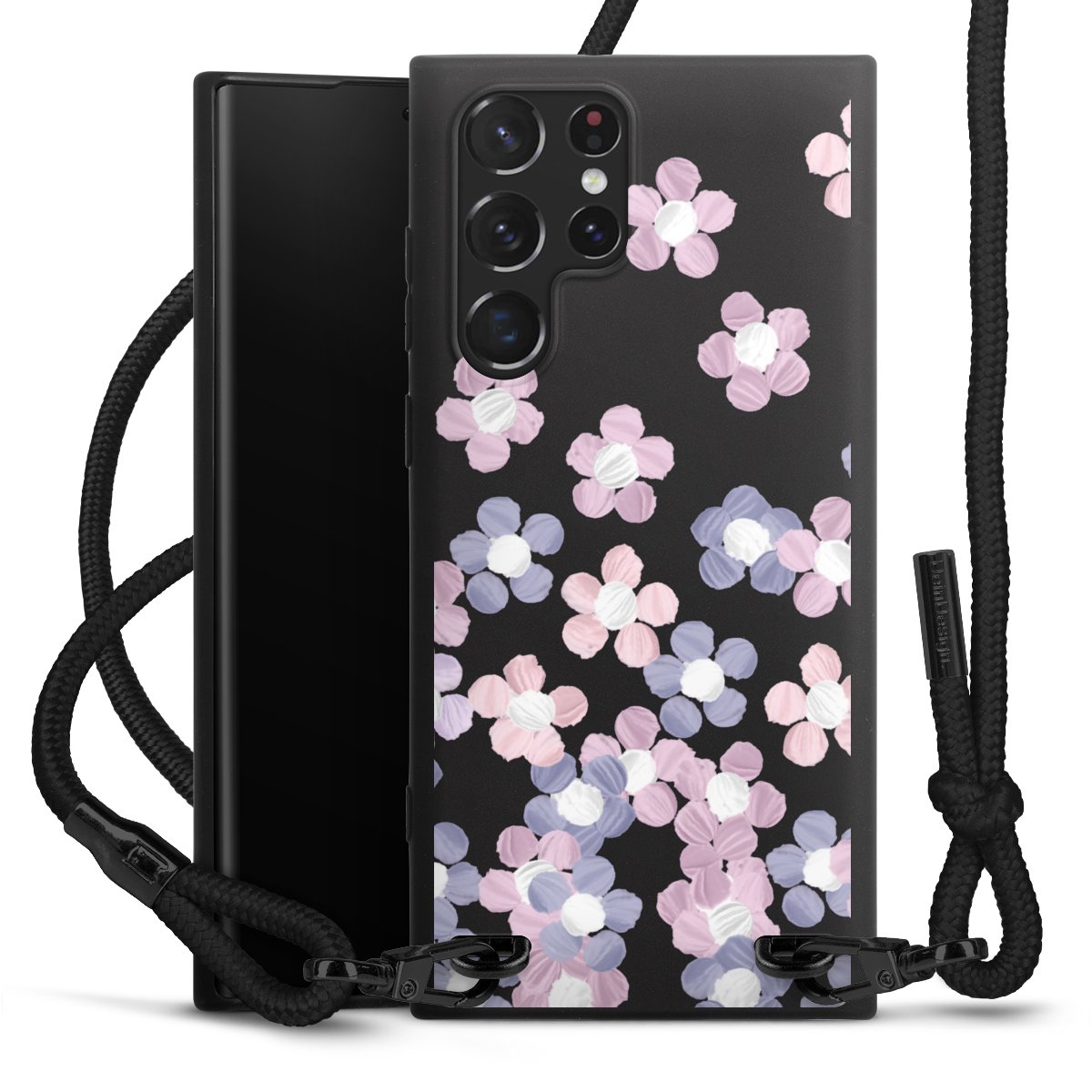 The matt black silicone case is made of flexible TPU (thermoplastic polyurethane) and offers robust protection. The durable, unbreakable material makes the cover flexible and dimensionally stable at the same time. The matte surface makes your design stand out more and is less susceptible to fingerprints and dirt. The stylish trend accessory fits comfortably in the hand and is perfectly complemented by the fabric (polyester) mobile phone strap. The braided fabric strap is approx. 1.70 metres long with a diameter of approx. 0.5 cm. Due to the special knotting technique, the length of the strap can be adjusted by simply pulling it, so that you can adapt it individually to your wishes. The practical case to wear around your neck is available with the fabric strap in black. As a little icing on the cake, we have provided the strap with a chic metal fastener in matt black. The strap is securely fastened to the case with loops made of high-quality genuine leather and press studs. The ends of the fabric strap are covered with metallic end caps and thus protected from fraying.