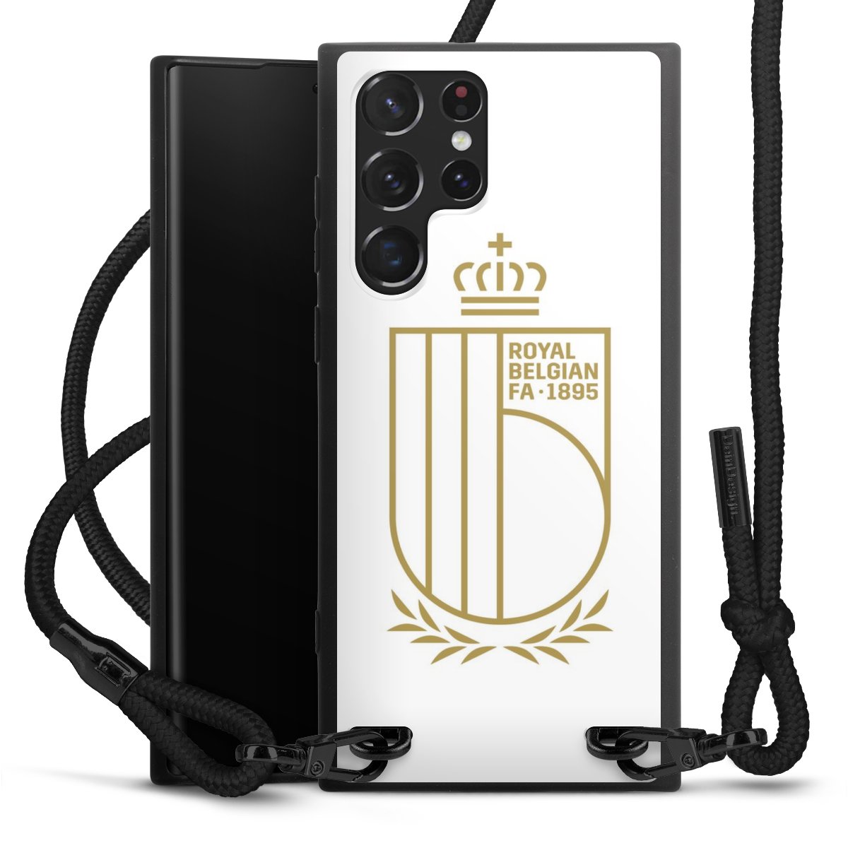 The matt black silicone case is made of flexible TPU (thermoplastic polyurethane) and offers robust protection. The durable, unbreakable material makes the cover flexible and dimensionally stable at the same time. The matte surface makes your design stand out more and is less susceptible to fingerprints and dirt. The stylish trend accessory fits comfortably in the hand and is perfectly complemented by the fabric (polyester) mobile phone strap. The braided fabric strap is approx. 1.70 metres long with a diameter of approx. 0.5 cm. Due to the special knotting technique, the length of the strap can be adjusted by simply pulling it, so that you can adapt it individually to your wishes. The practical case to wear around your neck is available with the fabric strap in black. As a little icing on the cake, we have provided the strap with a chic metal fastener in matt black. The strap is securely fastened to the case with loops made of high-quality genuine leather and press studs. The ends of the fabric strap are covered with metallic end caps and thus protected from fraying.