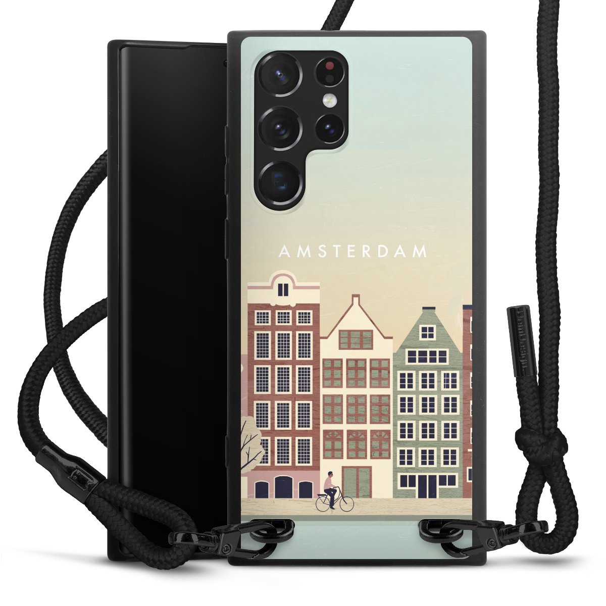 We use the solid direct print process for this phone case, which is why the print area only covers the back and the edge remains unprinted. The case to wear around your neck can be ordered unprinted, fully printed, or partially printed. For your design, either choose one of our exclusive shop motifs or get creative and create your own design, for example with photos and overlays. Design your own personal trend accessory and make an individual statement on the streets!