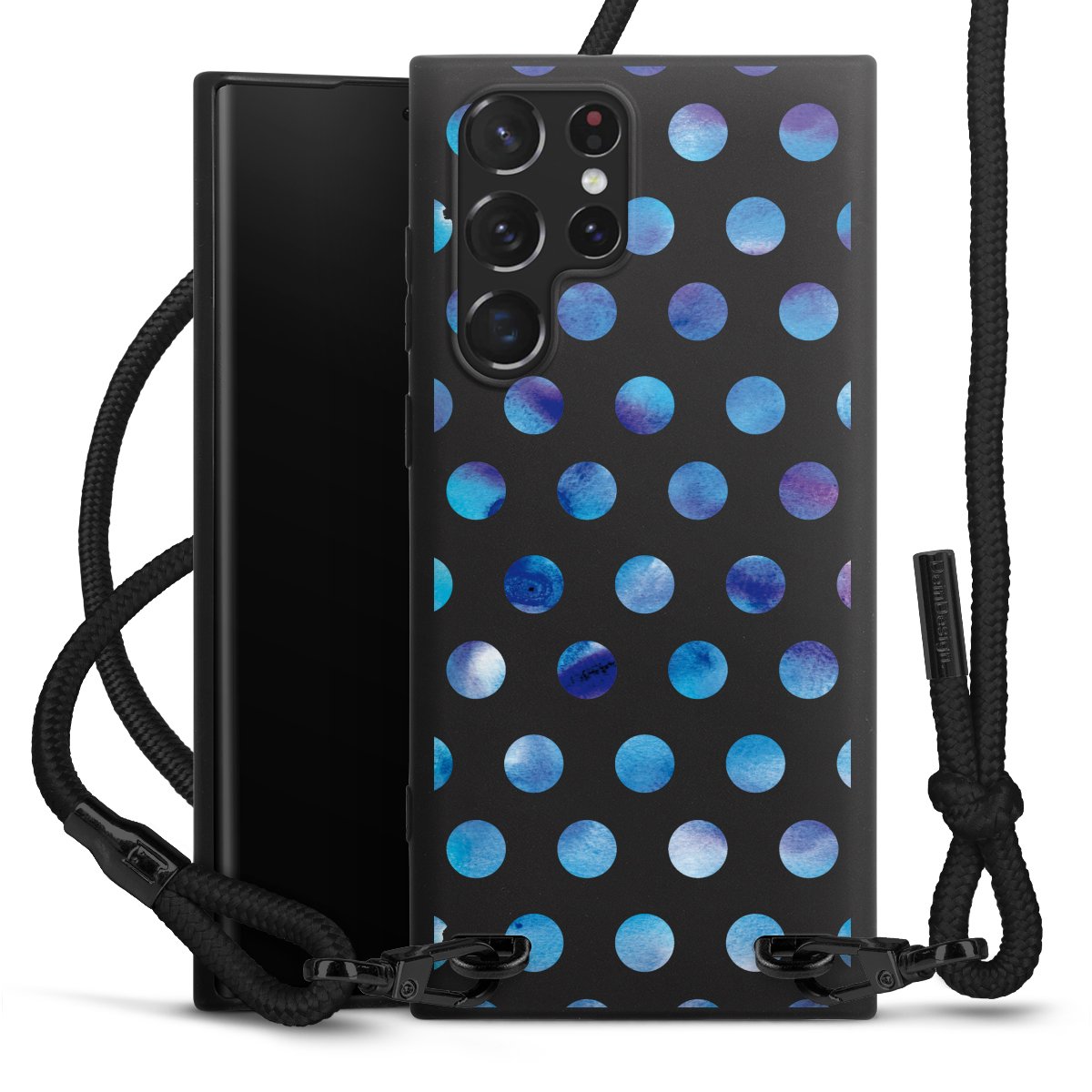 The matt black silicone case is made of flexible TPU (thermoplastic polyurethane) and offers robust protection. The durable, unbreakable material makes the cover flexible and dimensionally stable at the same time. The matte surface makes your design stand out more and is less susceptible to fingerprints and dirt. The stylish trend accessory fits comfortably in the hand and is perfectly complemented by the fabric (polyester) mobile phone strap. The braided fabric strap is approx. 1.70 metres long with a diameter of approx. 0.5 cm. Due to the special knotting technique, the length of the strap can be adjusted by simply pulling it, so that you can adapt it individually to your wishes. The practical case to wear around your neck is available with the fabric strap in black. As a little icing on the cake, we have provided the strap with a chic metal fastener in matt black. The strap is securely fastened to the case with loops made of high-quality genuine leather and press studs. The ends of the fabric strap are covered with metallic end caps and thus protected from fraying.