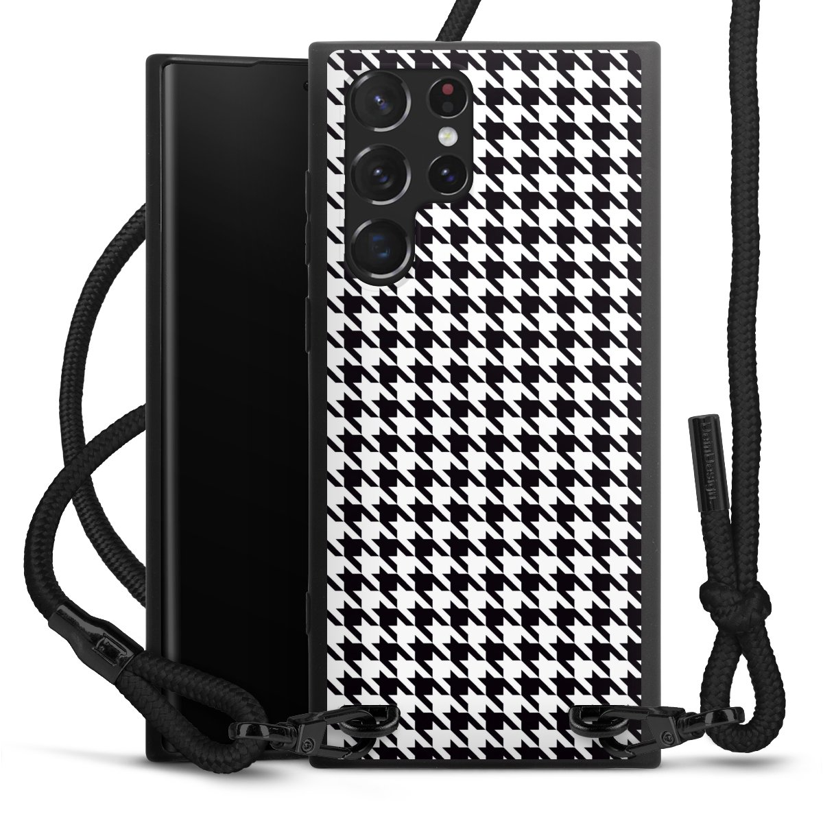 The matt black silicone case is made of flexible TPU (thermoplastic polyurethane) and offers robust protection. The durable, unbreakable material makes the cover flexible and dimensionally stable at the same time. The matte surface makes your design stand out more and is less susceptible to fingerprints and dirt. The stylish trend accessory fits comfortably in the hand and is perfectly complemented by the fabric (polyester) mobile phone strap. The braided fabric strap is approx. 1.70 metres long with a diameter of approx. 0.5 cm. Due to the special knotting technique, the length of the strap can be adjusted by simply pulling it, so that you can adapt it individually to your wishes. The practical case to wear around your neck is available with the fabric strap in black. As a little icing on the cake, we have provided the strap with a chic metal fastener in matt black. The strap is securely fastened to the case with loops made of high-quality genuine leather and press studs. The ends of the fabric strap are covered with metallic end caps and thus protected from fraying.