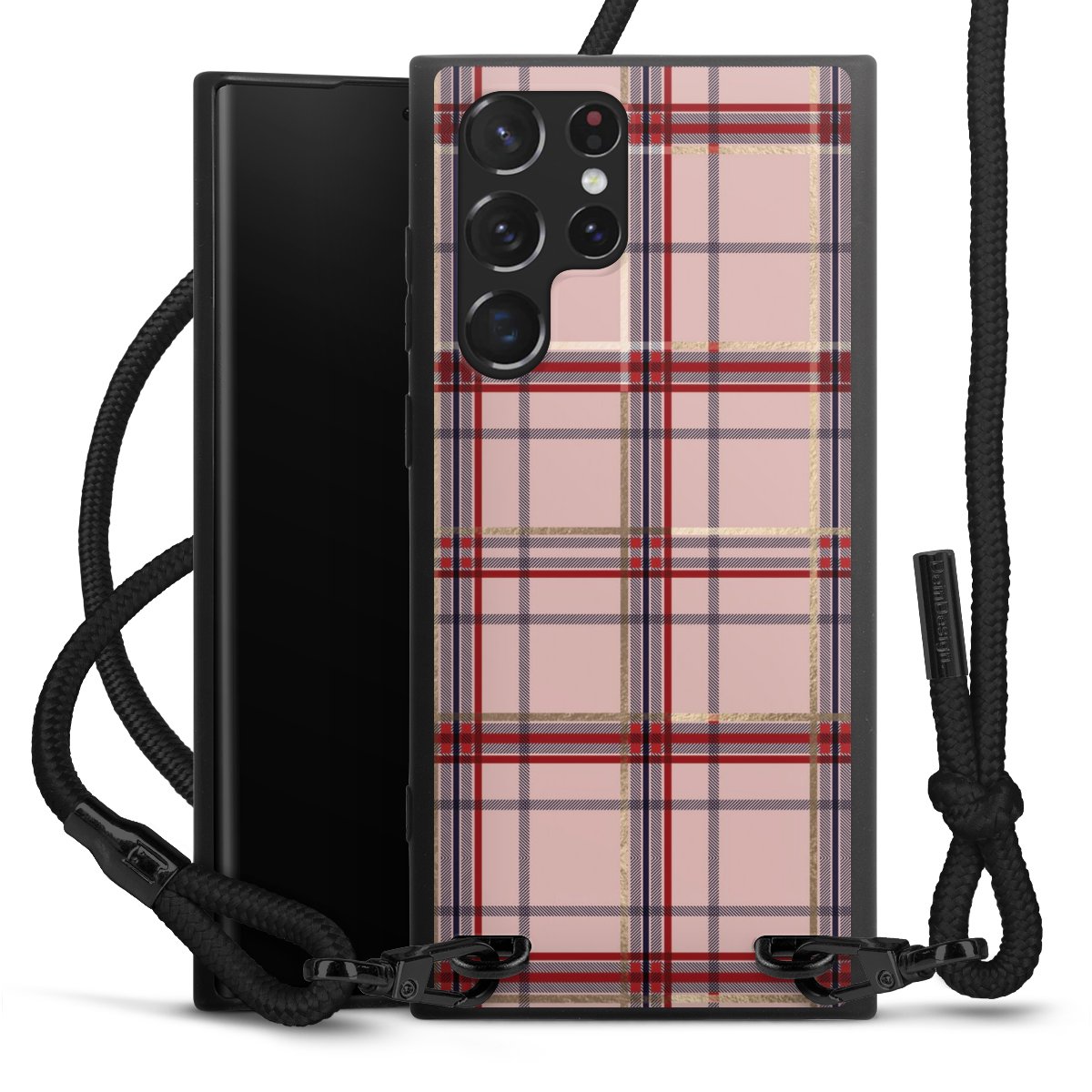 The matt black silicone case is made of flexible TPU (thermoplastic polyurethane) and offers robust protection. The durable, unbreakable material makes the cover flexible and dimensionally stable at the same time. The matte surface makes your design stand out more and is less susceptible to fingerprints and dirt. The stylish trend accessory fits comfortably in the hand and is perfectly complemented by the fabric (polyester) mobile phone strap. The braided fabric strap is approx. 1.70 metres long with a diameter of approx. 0.5 cm. Due to the special knotting technique, the length of the strap can be adjusted by simply pulling it, so that you can adapt it individually to your wishes. The practical case to wear around your neck is available with the fabric strap in black. As a little icing on the cake, we have provided the strap with a chic metal fastener in matt black. The strap is securely fastened to the case with loops made of high-quality genuine leather and press studs. The ends of the fabric strap are covered with metallic end caps and thus protected from fraying.
