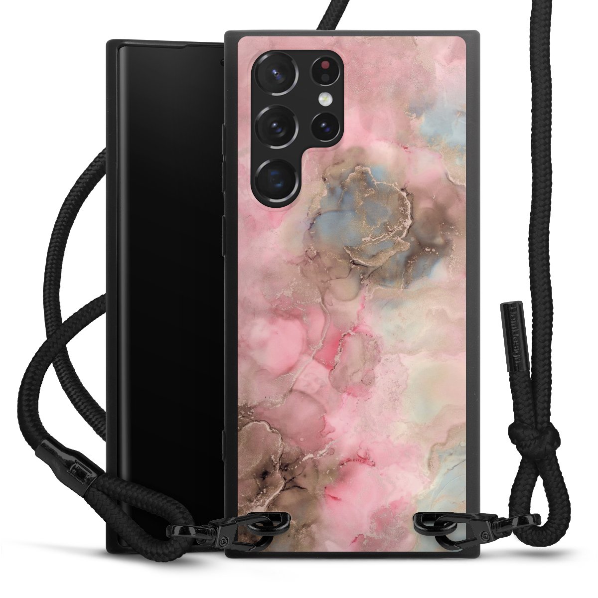 The matt black silicone case is made of flexible TPU (thermoplastic polyurethane) and offers robust protection. The durable, unbreakable material makes the cover flexible and dimensionally stable at the same time. The matte surface makes your design stand out more and is less susceptible to fingerprints and dirt. The stylish trend accessory fits comfortably in the hand and is perfectly complemented by the fabric (polyester) mobile phone strap. The braided fabric strap is approx. 1.70 metres long with a diameter of approx. 0.5 cm. Due to the special knotting technique, the length of the strap can be adjusted by simply pulling it, so that you can adapt it individually to your wishes. The practical case to wear around your neck is available with the fabric strap in black. As a little icing on the cake, we have provided the strap with a chic metal fastener in matt black. The strap is securely fastened to the case with loops made of high-quality genuine leather and press studs. The ends of the fabric strap are covered with metallic end caps and thus protected from fraying.