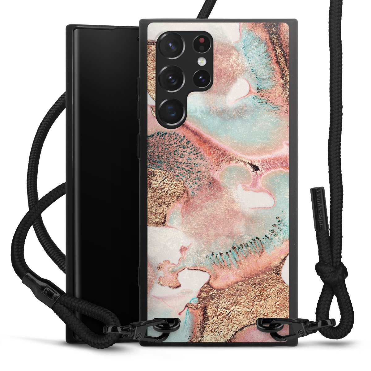 We use the solid direct print process for this phone case, which is why the print area only covers the back and the edge remains unprinted. The case to wear around your neck can be ordered unprinted, fully printed, or partially printed. For your design, either choose one of our exclusive shop motifs or get creative and create your own design, for example with photos and overlays. Design your own personal trend accessory and make an individual statement on the streets!