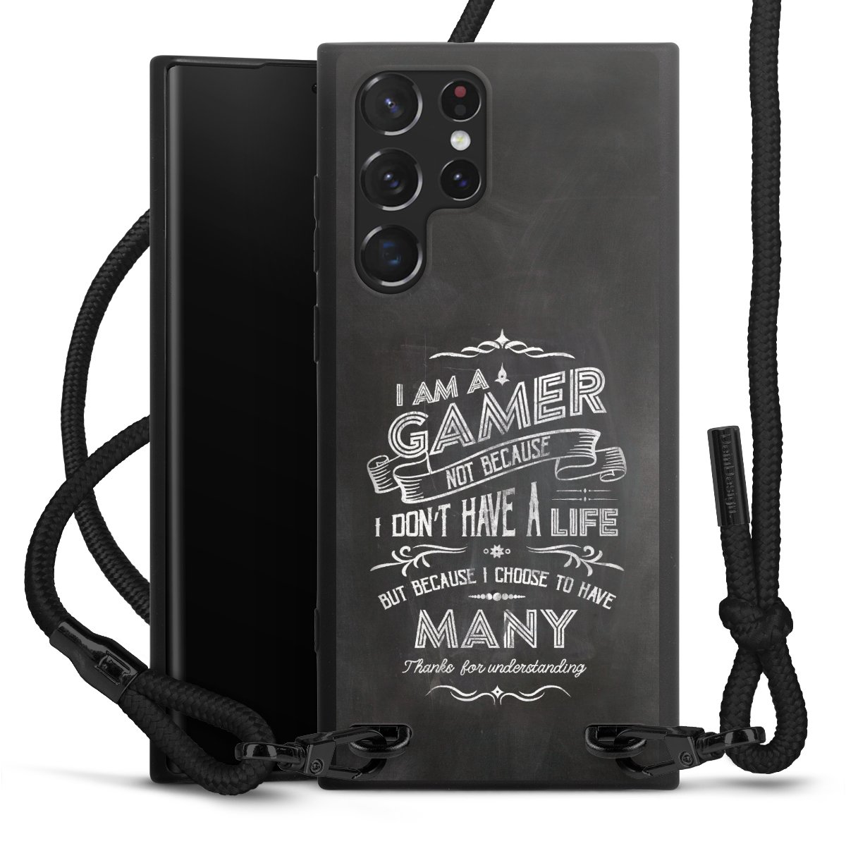 We use the solid direct print process for this phone case, which is why the print area only covers the back and the edge remains unprinted. The case to wear around your neck can be ordered unprinted, fully printed, or partially printed. For your design, either choose one of our exclusive shop motifs or get creative and create your own design, for example with photos and overlays. Design your own personal trend accessory and make an individual statement on the streets!