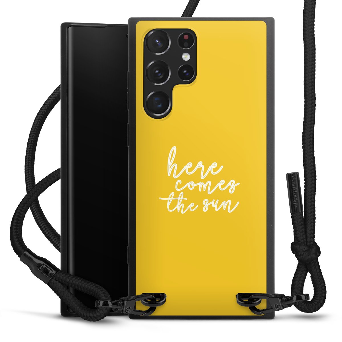The matt black silicone case is made of flexible TPU (thermoplastic polyurethane) and offers robust protection. The durable, unbreakable material makes the cover flexible and dimensionally stable at the same time. The matte surface makes your design stand out more and is less susceptible to fingerprints and dirt. The stylish trend accessory fits comfortably in the hand and is perfectly complemented by the fabric (polyester) mobile phone strap. The braided fabric strap is approx. 1.70 metres long with a diameter of approx. 0.5 cm. Due to the special knotting technique, the length of the strap can be adjusted by simply pulling it, so that you can adapt it individually to your wishes. The practical case to wear around your neck is available with the fabric strap in black. As a little icing on the cake, we have provided the strap with a chic metal fastener in matt black. The strap is securely fastened to the case with loops made of high-quality genuine leather and press studs. The ends of the fabric strap are covered with metallic end caps and thus protected from fraying.