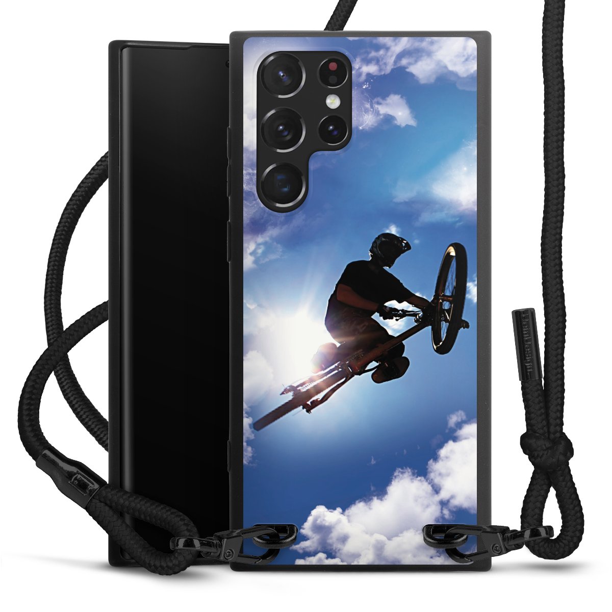 We use the solid direct print process for this phone case, which is why the print area only covers the back and the edge remains unprinted. The case to wear around your neck can be ordered unprinted, fully printed, or partially printed. For your design, either choose one of our exclusive shop motifs or get creative and create your own design, for example with photos and overlays. Design your own personal trend accessory and make an individual statement on the streets!