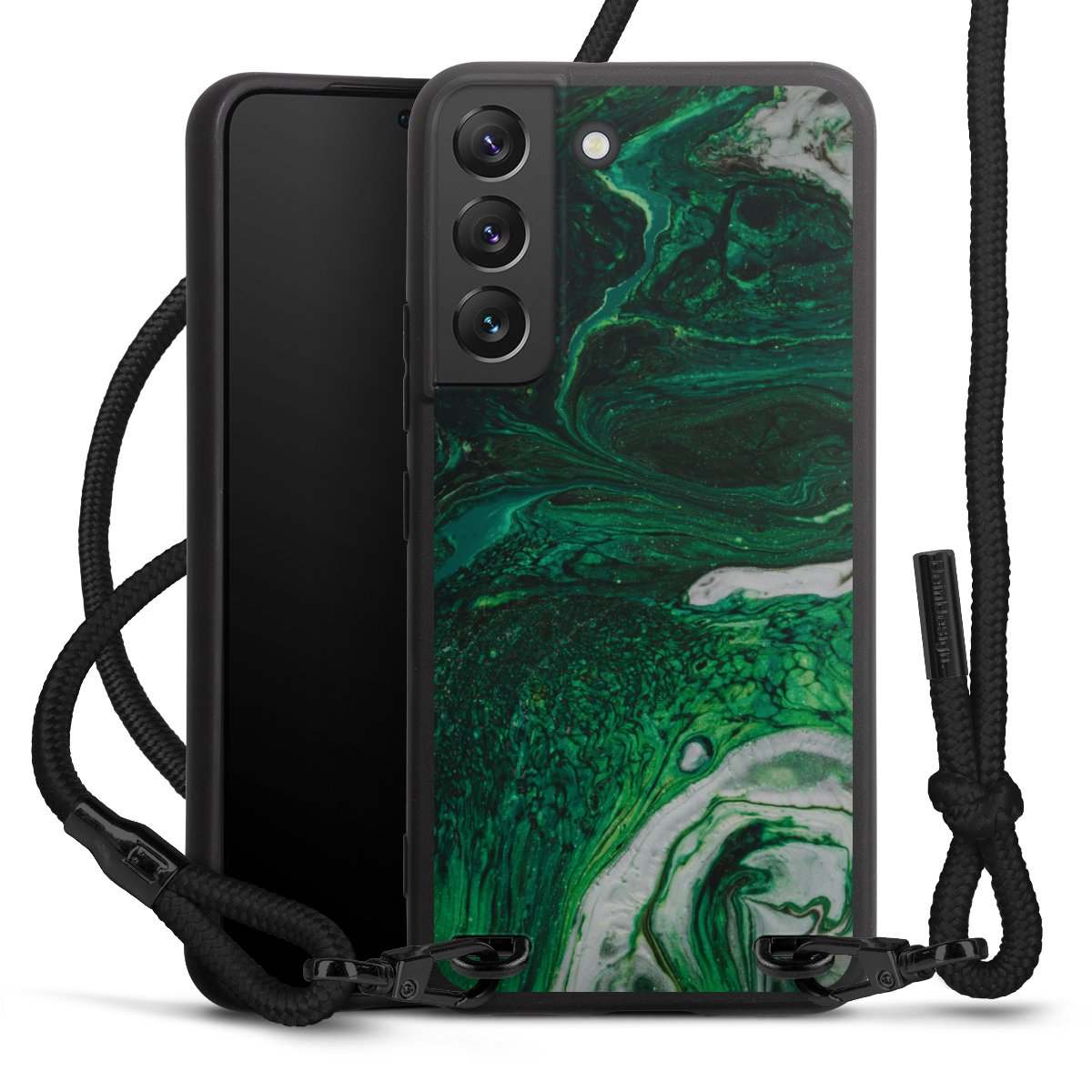 We use the solid direct print process for this phone case, which is why the print area only covers the back and the edge remains unprinted. The case to wear around your neck can be ordered unprinted, fully printed, or partially printed. For your design, either choose one of our exclusive shop motifs or get creative and create your own design, for example with photos and overlays. Design your own personal trend accessory and make an individual statement on the streets!
