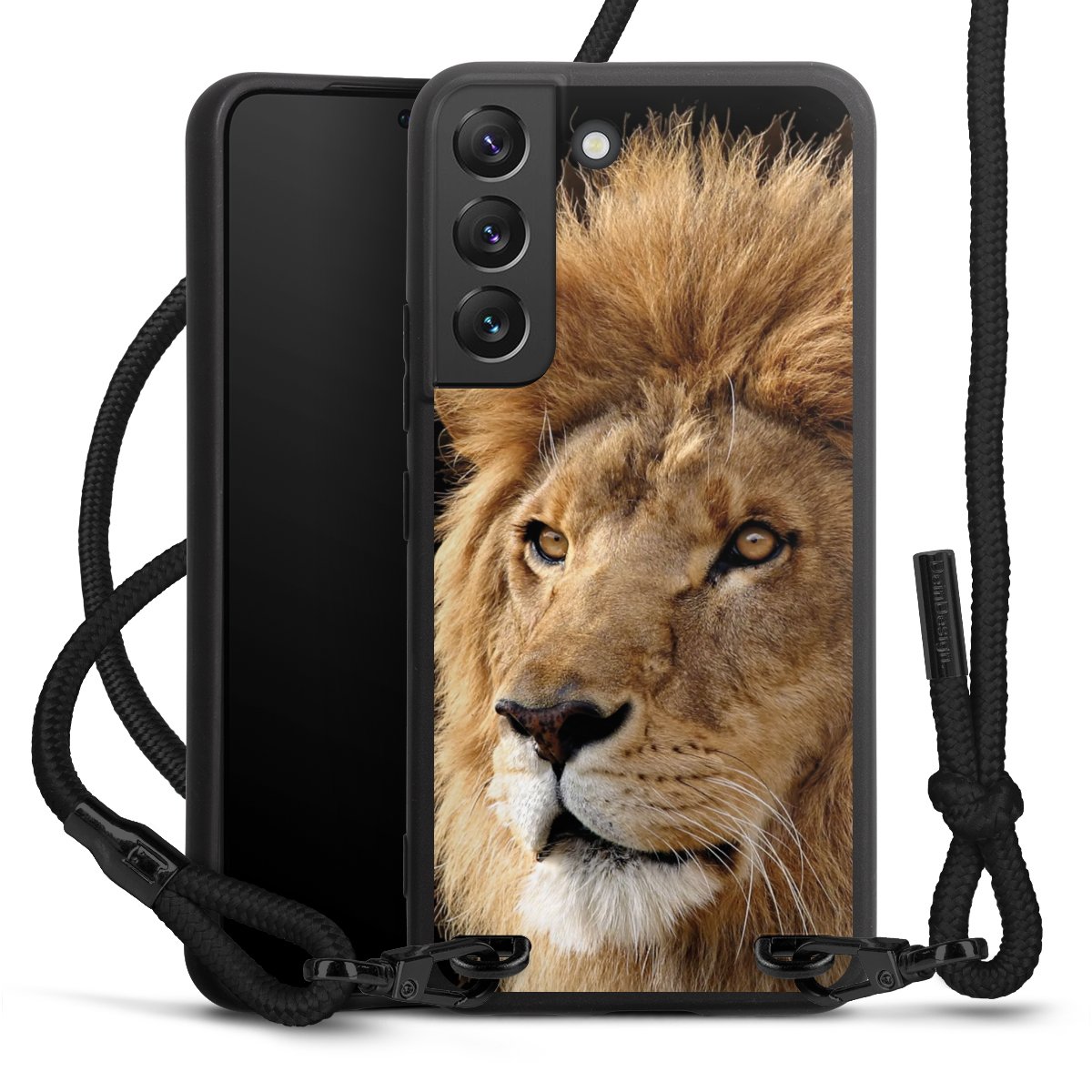 The matt black silicone case is made of flexible TPU (thermoplastic polyurethane) and offers robust protection. The durable, unbreakable material makes the cover flexible and dimensionally stable at the same time. The matte surface makes your design stand out more and is less susceptible to fingerprints and dirt. The stylish trend accessory fits comfortably in the hand and is perfectly complemented by the fabric (polyester) mobile phone strap. The braided fabric strap is approx. 1.70 metres long with a diameter of approx. 0.5 cm. Due to the special knotting technique, the length of the strap can be adjusted by simply pulling it, so that you can adapt it individually to your wishes. The practical case to wear around your neck is available with the fabric strap in black. As a little icing on the cake, we have provided the strap with a chic metal fastener in matt black. The strap is securely fastened to the case with loops made of high-quality genuine leather and press studs. The ends of the fabric strap are covered with metallic end caps and thus protected from fraying.