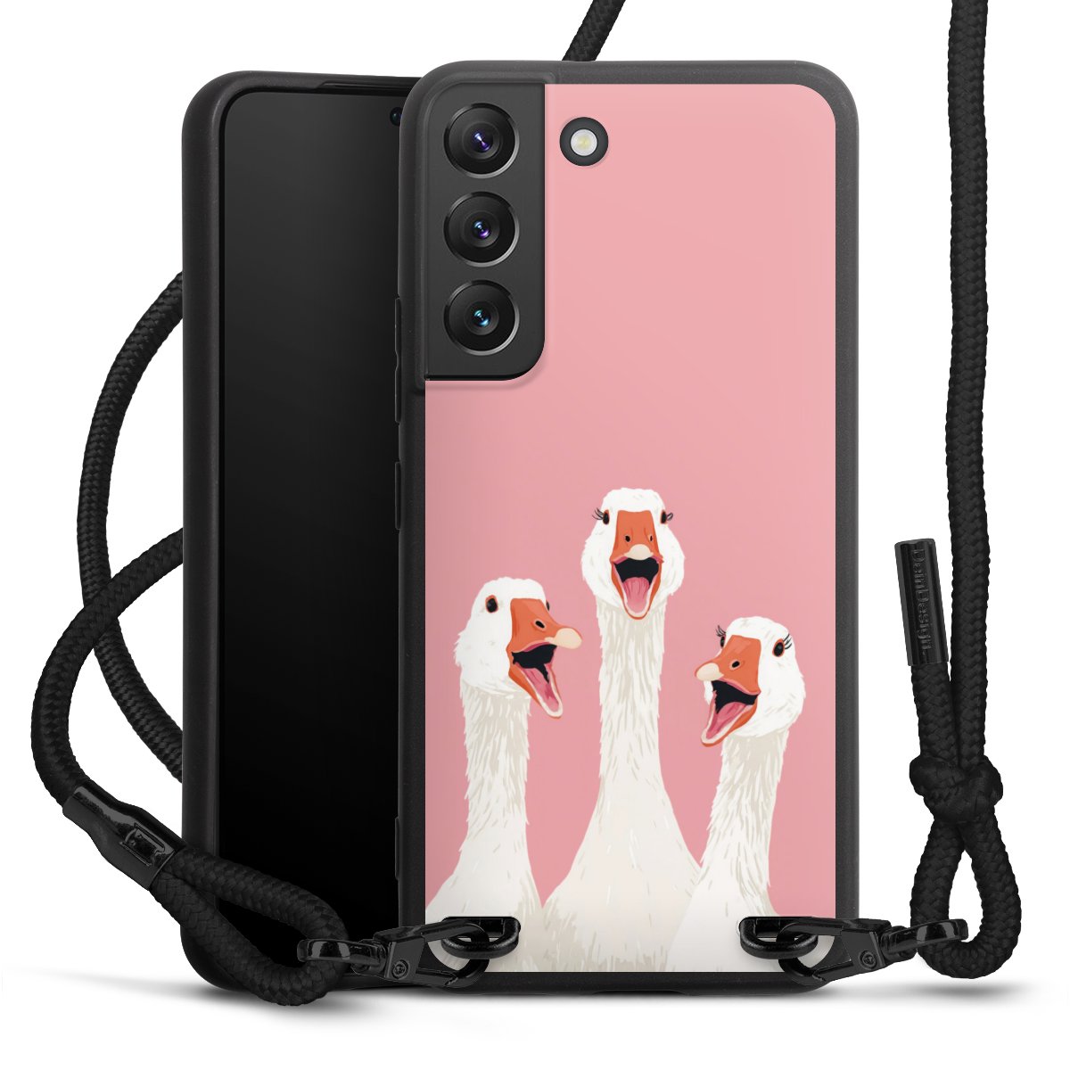 We use the solid direct print process for this phone case, which is why the print area only covers the back and the edge remains unprinted. The case to wear around your neck can be ordered unprinted, fully printed, or partially printed. For your design, either choose one of our exclusive shop motifs or get creative and create your own design, for example with photos and overlays. Design your own personal trend accessory and make an individual statement on the streets!