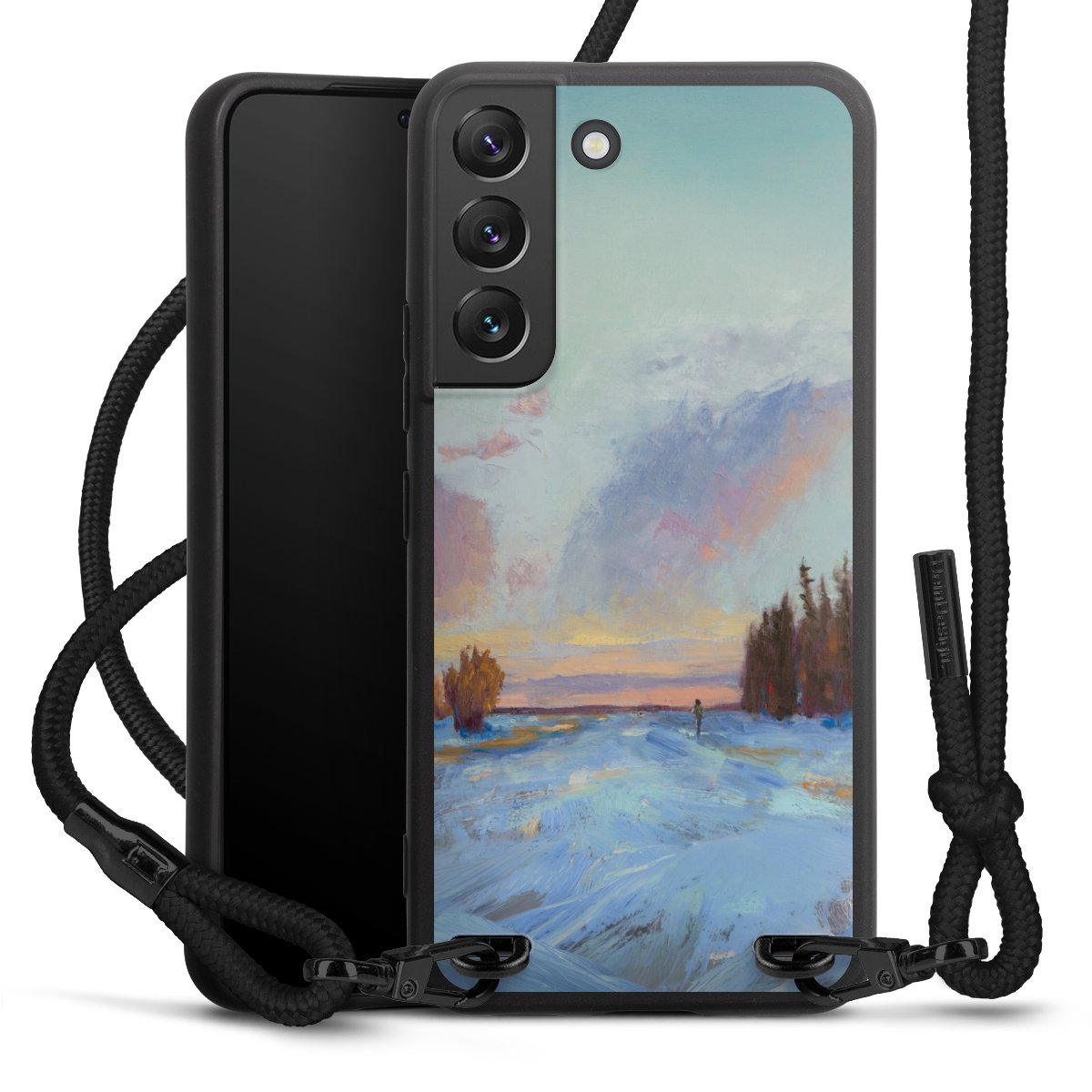 We use the solid direct print process for this phone case, which is why the print area only covers the back and the edge remains unprinted. The case to wear around your neck can be ordered unprinted, fully printed, or partially printed. For your design, either choose one of our exclusive shop motifs or get creative and create your own design, for example with photos and overlays. Design your own personal trend accessory and make an individual statement on the streets!