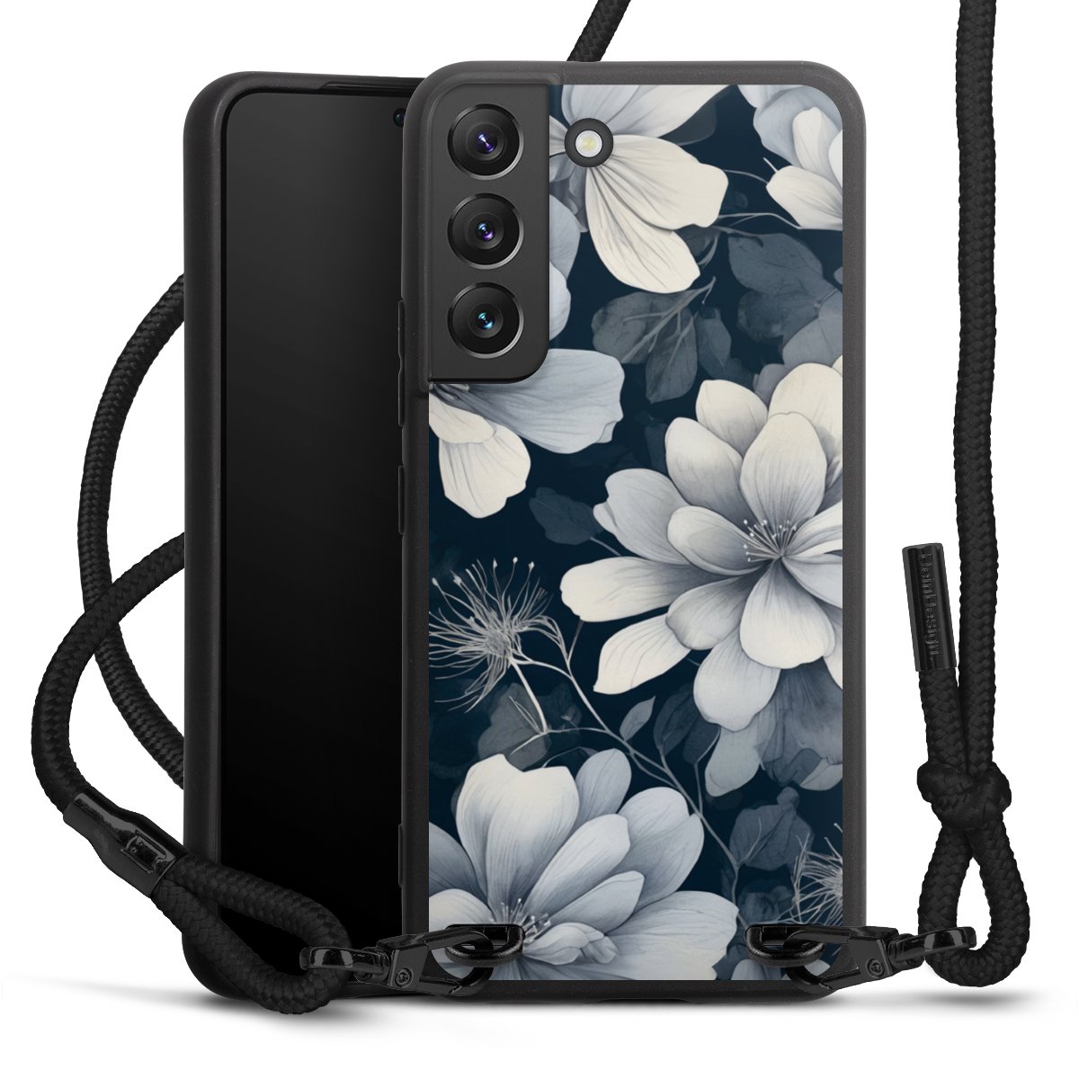 The matt black silicone case is made of flexible TPU (thermoplastic polyurethane) and offers robust protection. The durable, unbreakable material makes the cover flexible and dimensionally stable at the same time. The matte surface makes your design stand out more and is less susceptible to fingerprints and dirt. The stylish trend accessory fits comfortably in the hand and is perfectly complemented by the fabric (polyester) mobile phone strap. The braided fabric strap is approx. 1.70 metres long with a diameter of approx. 0.5 cm. Due to the special knotting technique, the length of the strap can be adjusted by simply pulling it, so that you can adapt it individually to your wishes. The practical case to wear around your neck is available with the fabric strap in black. As a little icing on the cake, we have provided the strap with a chic metal fastener in matt black. The strap is securely fastened to the case with loops made of high-quality genuine leather and press studs. The ends of the fabric strap are covered with metallic end caps and thus protected from fraying.