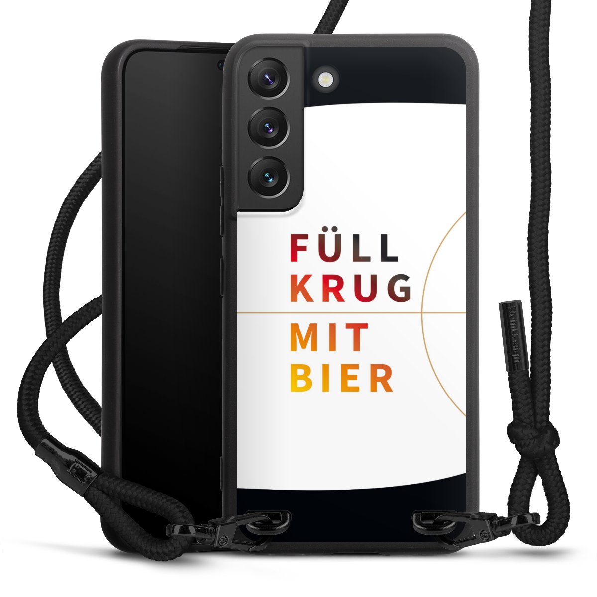 We use the solid direct print process for this phone case, which is why the print area only covers the back and the edge remains unprinted. The case to wear around your neck can be ordered unprinted, fully printed, or partially printed. For your design, either choose one of our exclusive shop motifs or get creative and create your own design, for example with photos and overlays. Design your own personal trend accessory and make an individual statement on the streets!