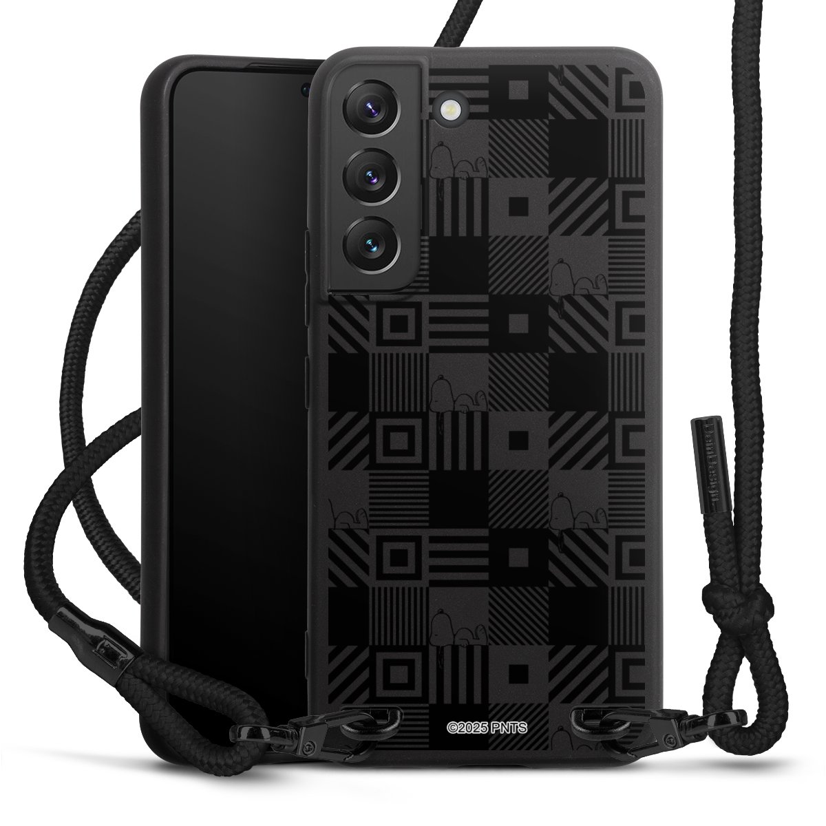 Pure Black: Phone case, fabric strap and metal details in stylish matt black.