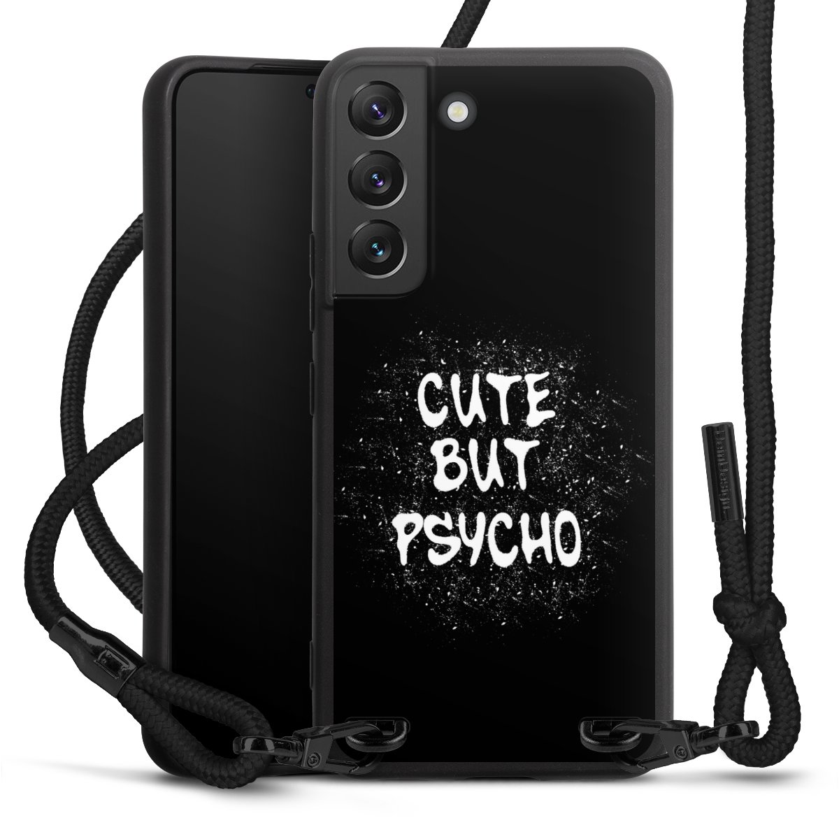 The matt black silicone case is made of flexible TPU (thermoplastic polyurethane) and offers robust protection. The durable, unbreakable material makes the cover flexible and dimensionally stable at the same time. The matte surface makes your design stand out more and is less susceptible to fingerprints and dirt. The stylish trend accessory fits comfortably in the hand and is perfectly complemented by the fabric (polyester) mobile phone strap. The braided fabric strap is approx. 1.70 metres long with a diameter of approx. 0.5 cm. Due to the special knotting technique, the length of the strap can be adjusted by simply pulling it, so that you can adapt it individually to your wishes. The practical case to wear around your neck is available with the fabric strap in black. As a little icing on the cake, we have provided the strap with a chic metal fastener in matt black. The strap is securely fastened to the case with loops made of high-quality genuine leather and press studs. The ends of the fabric strap are covered with metallic end caps and thus protected from fraying.