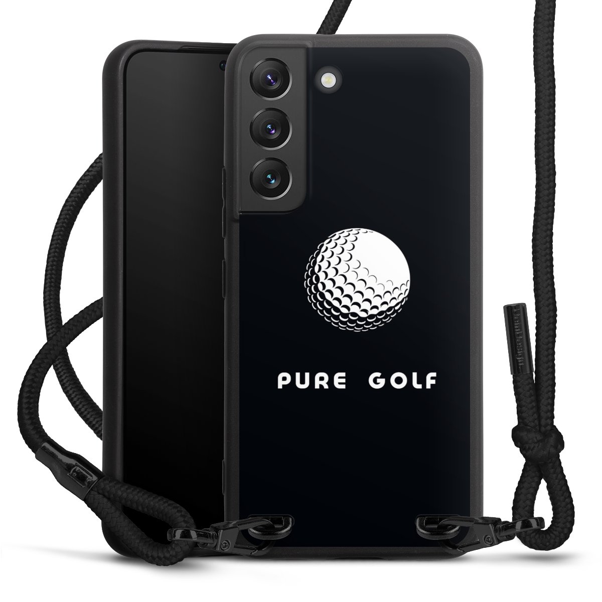 Pure Black: Phone case, fabric strap and metal details in stylish matt black.