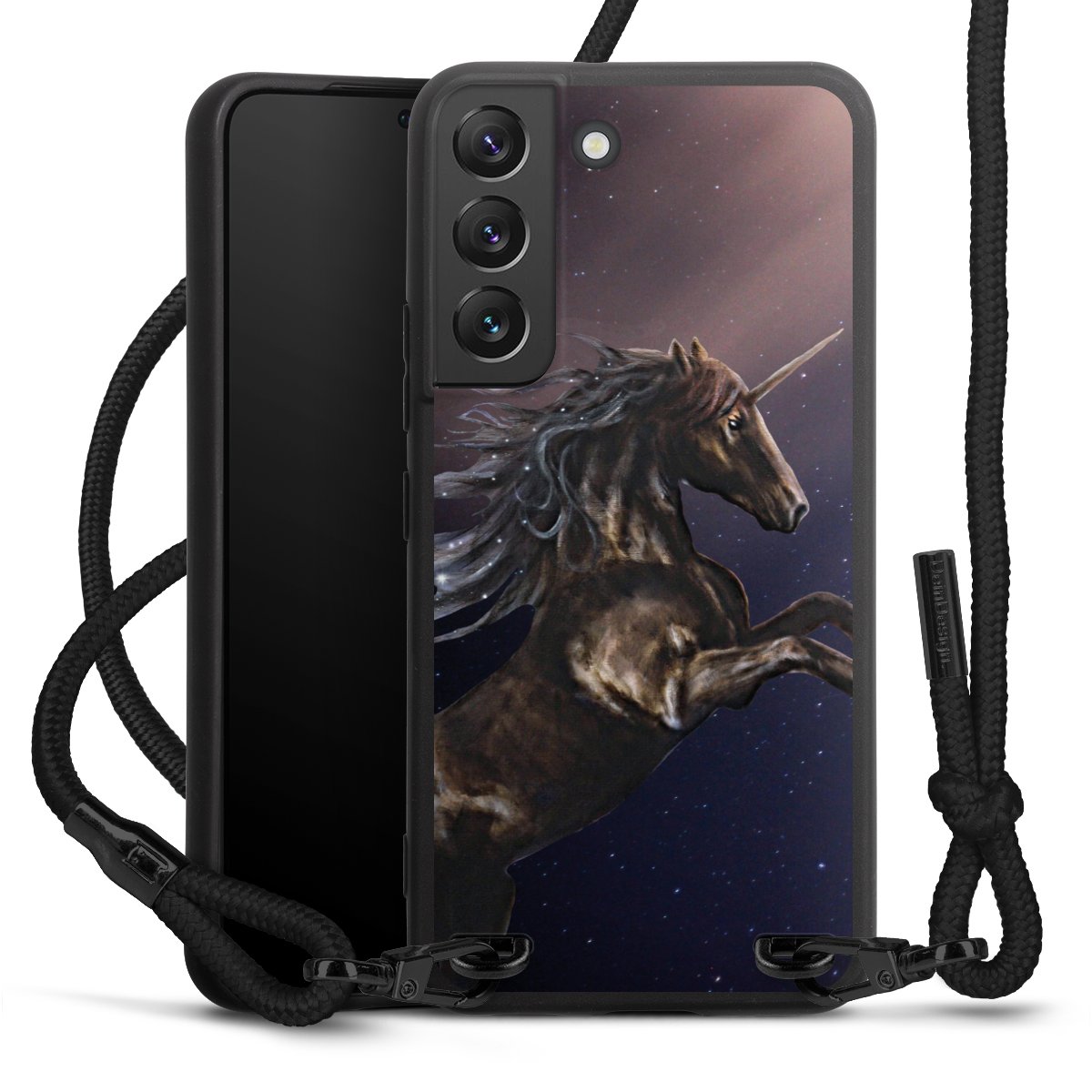 The matt black silicone case is made of flexible TPU (thermoplastic polyurethane) and offers robust protection. The durable, unbreakable material makes the cover flexible and dimensionally stable at the same time. The matte surface makes your design stand out more and is less susceptible to fingerprints and dirt. The stylish trend accessory fits comfortably in the hand and is perfectly complemented by the fabric (polyester) mobile phone strap. The braided fabric strap is approx. 1.70 metres long with a diameter of approx. 0.5 cm. Due to the special knotting technique, the length of the strap can be adjusted by simply pulling it, so that you can adapt it individually to your wishes. The practical case to wear around your neck is available with the fabric strap in black. As a little icing on the cake, we have provided the strap with a chic metal fastener in matt black. The strap is securely fastened to the case with loops made of high-quality genuine leather and press studs. The ends of the fabric strap are covered with metallic end caps and thus protected from fraying.