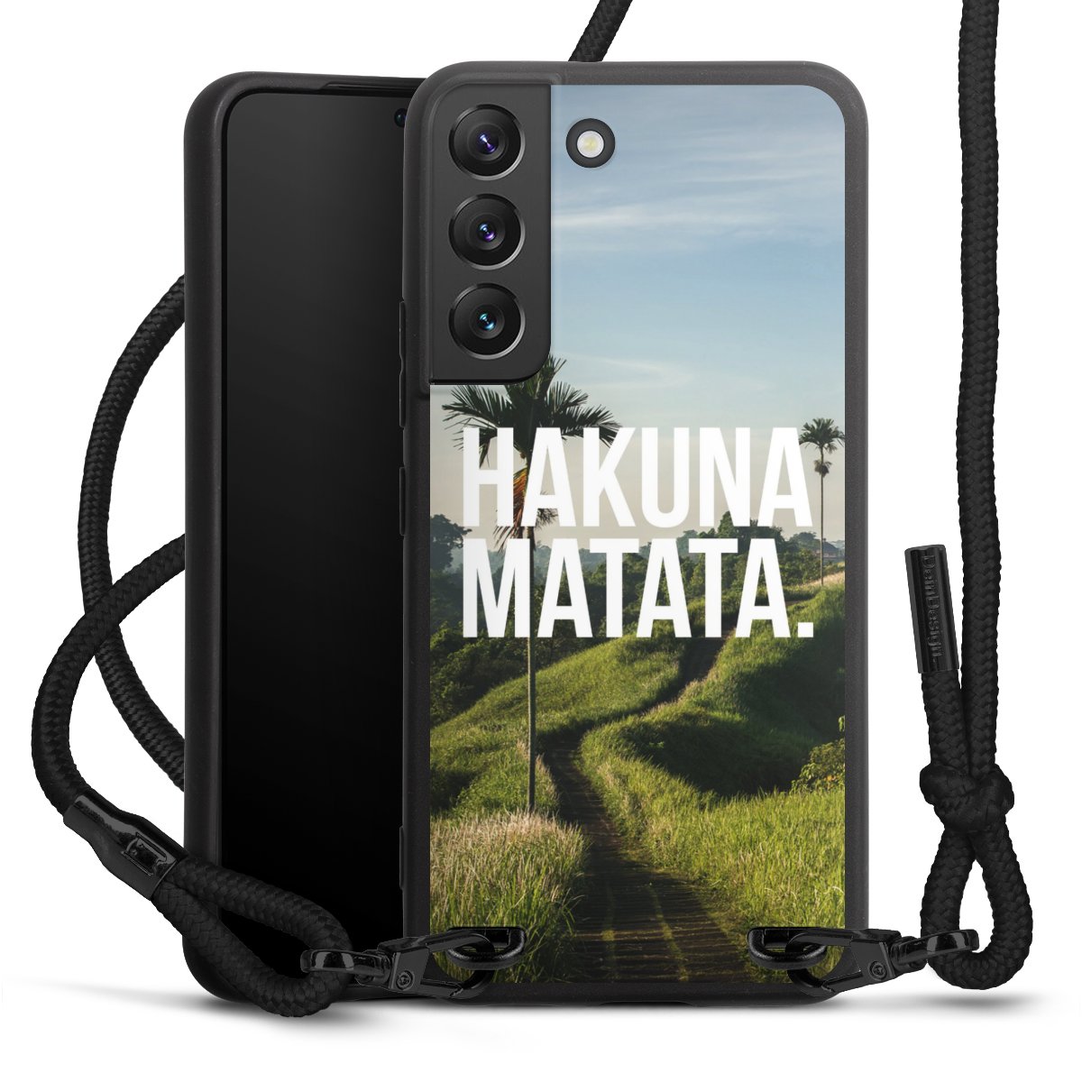 We use the solid direct print process for this phone case, which is why the print area only covers the back and the edge remains unprinted. The case to wear around your neck can be ordered unprinted, fully printed, or partially printed. For your design, either choose one of our exclusive shop motifs or get creative and create your own design, for example with photos and overlays. Design your own personal trend accessory and make an individual statement on the streets!