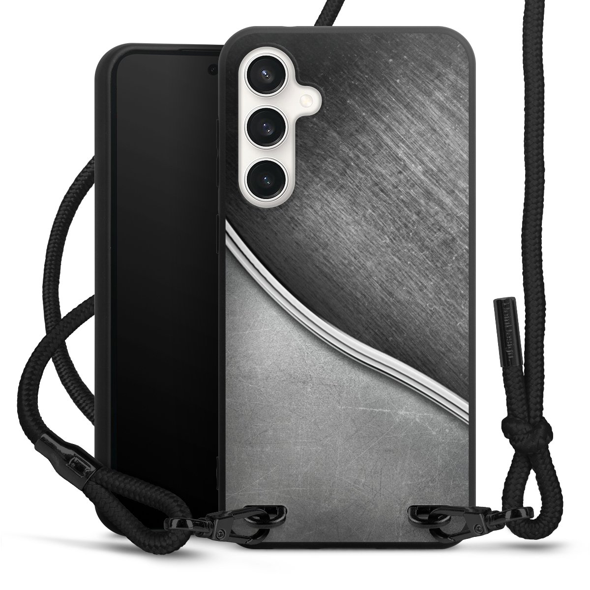 Pure Black: Phone case, fabric strap and metal details in stylish matt black.
