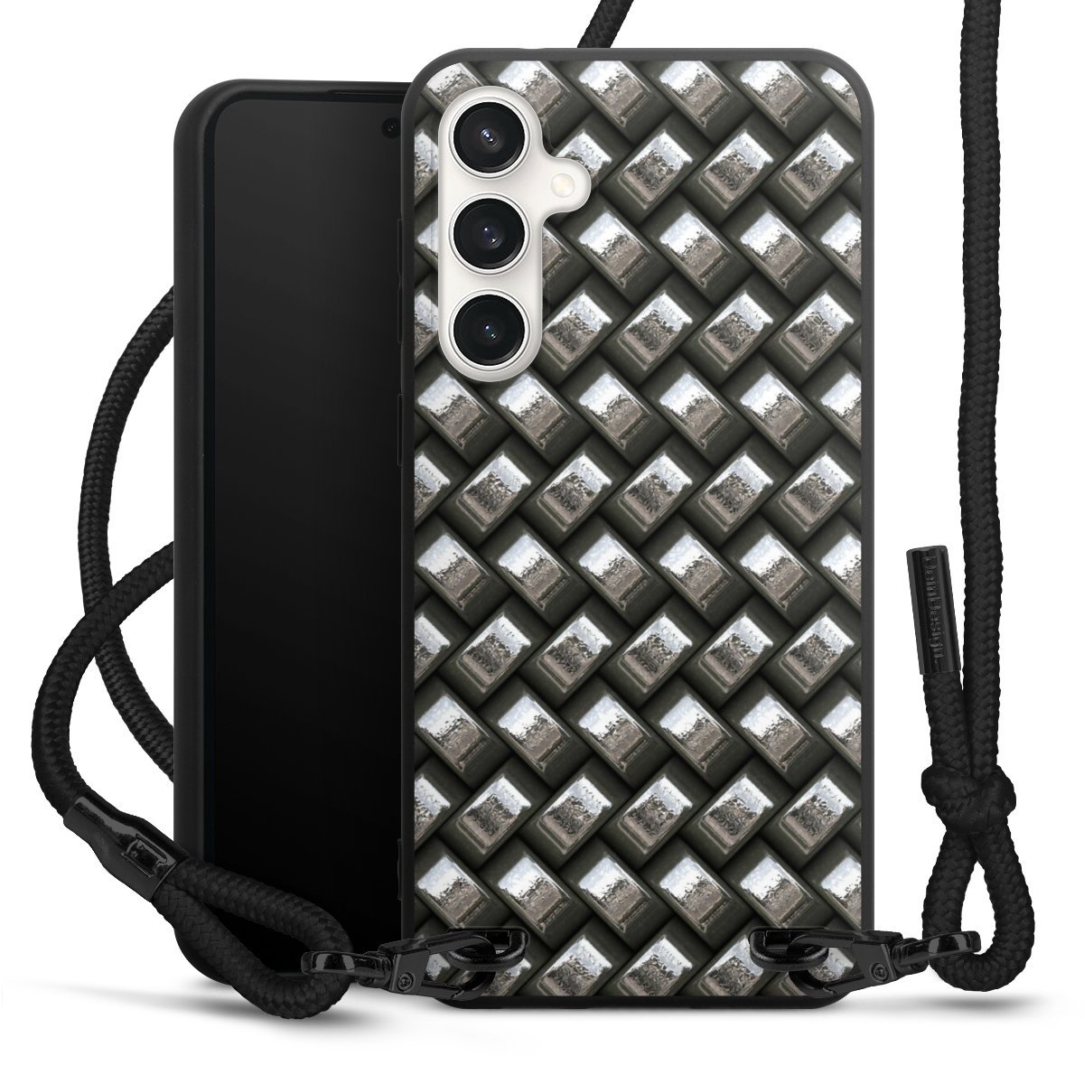 The matt black silicone case is made of flexible TPU (thermoplastic polyurethane) and offers robust protection. The durable, unbreakable material makes the cover flexible and dimensionally stable at the same time. The matte surface makes your design stand out more and is less susceptible to fingerprints and dirt. The stylish trend accessory fits comfortably in the hand and is perfectly complemented by the fabric (polyester) mobile phone strap. The braided fabric strap is approx. 1.70 metres long with a diameter of approx. 0.5 cm. Due to the special knotting technique, the length of the strap can be adjusted by simply pulling it, so that you can adapt it individually to your wishes. The practical case to wear around your neck is available with the fabric strap in black. As a little icing on the cake, we have provided the strap with a chic metal fastener in matt black. The strap is securely fastened to the case with loops made of high-quality genuine leather and press studs. The ends of the fabric strap are covered with metallic end caps and thus protected from fraying.