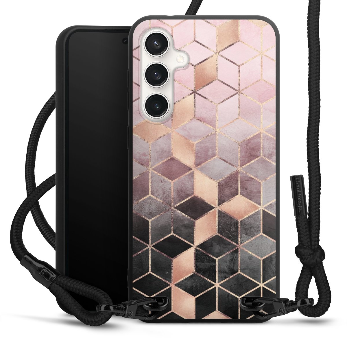 The matt black silicone case is made of flexible TPU (thermoplastic polyurethane) and offers robust protection. The durable, unbreakable material makes the cover flexible and dimensionally stable at the same time. The matte surface makes your design stand out more and is less susceptible to fingerprints and dirt. The stylish trend accessory fits comfortably in the hand and is perfectly complemented by the fabric (polyester) mobile phone strap. The braided fabric strap is approx. 1.70 metres long with a diameter of approx. 0.5 cm. Due to the special knotting technique, the length of the strap can be adjusted by simply pulling it, so that you can adapt it individually to your wishes. The practical case to wear around your neck is available with the fabric strap in black. As a little icing on the cake, we have provided the strap with a chic metal fastener in matt black. The strap is securely fastened to the case with loops made of high-quality genuine leather and press studs. The ends of the fabric strap are covered with metallic end caps and thus protected from fraying.