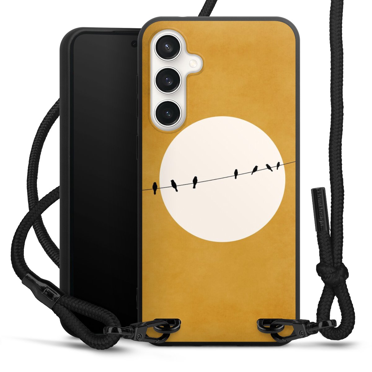 The matt black silicone case is made of flexible TPU (thermoplastic polyurethane) and offers robust protection. The durable, unbreakable material makes the cover flexible and dimensionally stable at the same time. The matte surface makes your design stand out more and is less susceptible to fingerprints and dirt. The stylish trend accessory fits comfortably in the hand and is perfectly complemented by the fabric (polyester) mobile phone strap. The braided fabric strap is approx. 1.70 metres long with a diameter of approx. 0.5 cm. Due to the special knotting technique, the length of the strap can be adjusted by simply pulling it, so that you can adapt it individually to your wishes. The practical case to wear around your neck is available with the fabric strap in black. As a little icing on the cake, we have provided the strap with a chic metal fastener in matt black. The strap is securely fastened to the case with loops made of high-quality genuine leather and press studs. The ends of the fabric strap are covered with metallic end caps and thus protected from fraying.