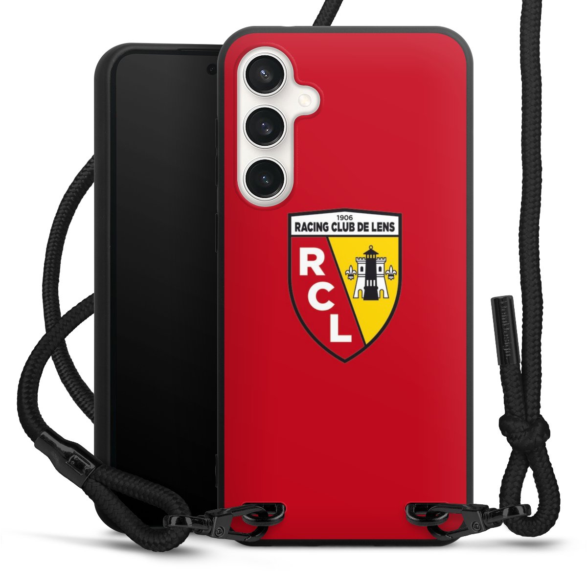 The matt black silicone case is made of flexible TPU (thermoplastic polyurethane) and offers robust protection. The durable, unbreakable material makes the cover flexible and dimensionally stable at the same time. The matte surface makes your design stand out more and is less susceptible to fingerprints and dirt. The stylish trend accessory fits comfortably in the hand and is perfectly complemented by the fabric (polyester) mobile phone strap. The braided fabric strap is approx. 1.70 metres long with a diameter of approx. 0.5 cm. Due to the special knotting technique, the length of the strap can be adjusted by simply pulling it, so that you can adapt it individually to your wishes. The practical case to wear around your neck is available with the fabric strap in black. As a little icing on the cake, we have provided the strap with a chic metal fastener in matt black. The strap is securely fastened to the case with loops made of high-quality genuine leather and press studs. The ends of the fabric strap are covered with metallic end caps and thus protected from fraying.