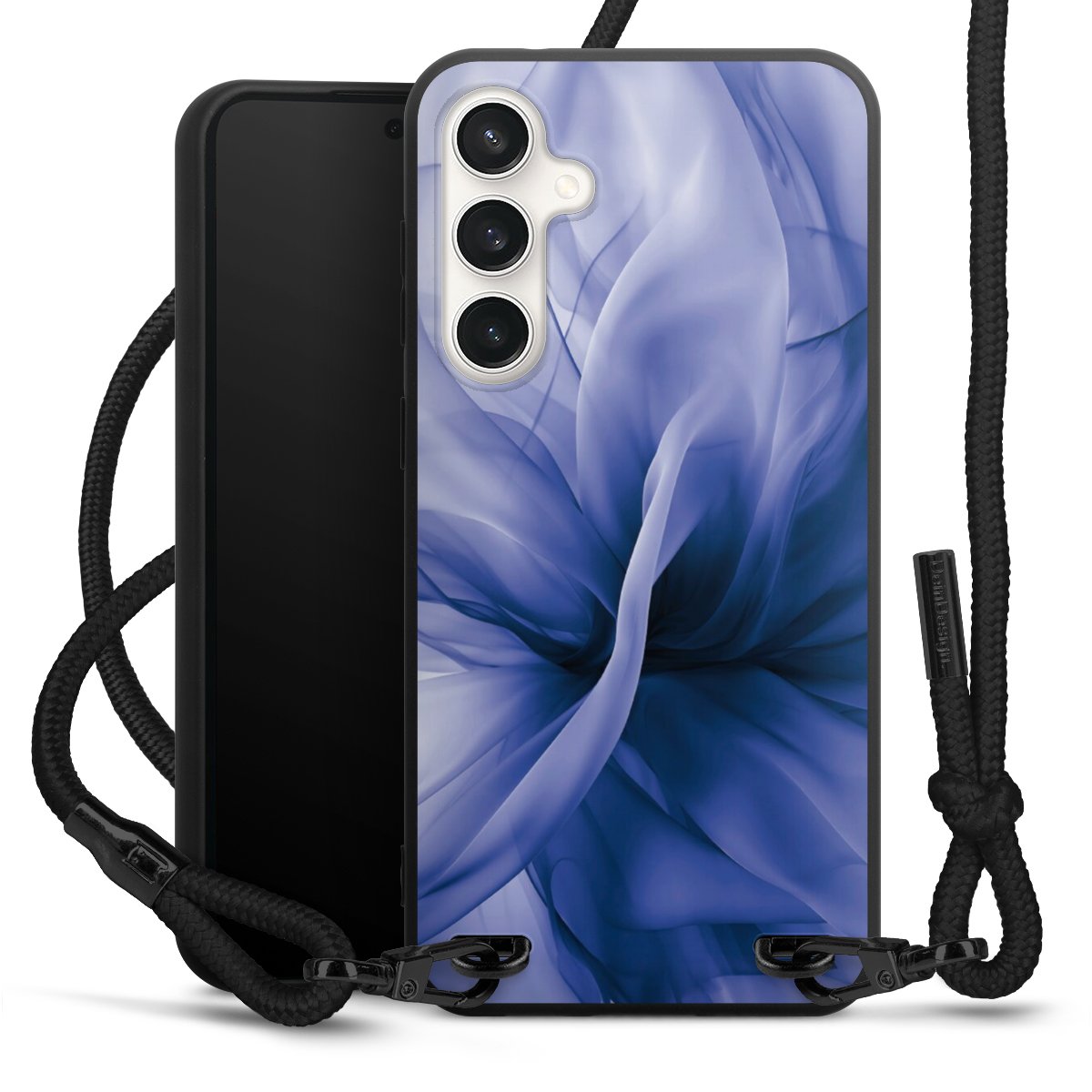 The matt black silicone case is made of flexible TPU (thermoplastic polyurethane) and offers robust protection. The durable, unbreakable material makes the cover flexible and dimensionally stable at the same time. The matte surface makes your design stand out more and is less susceptible to fingerprints and dirt. The stylish trend accessory fits comfortably in the hand and is perfectly complemented by the fabric (polyester) mobile phone strap. The braided fabric strap is approx. 1.70 metres long with a diameter of approx. 0.5 cm. Due to the special knotting technique, the length of the strap can be adjusted by simply pulling it, so that you can adapt it individually to your wishes. The practical case to wear around your neck is available with the fabric strap in black. As a little icing on the cake, we have provided the strap with a chic metal fastener in matt black. The strap is securely fastened to the case with loops made of high-quality genuine leather and press studs. The ends of the fabric strap are covered with metallic end caps and thus protected from fraying.