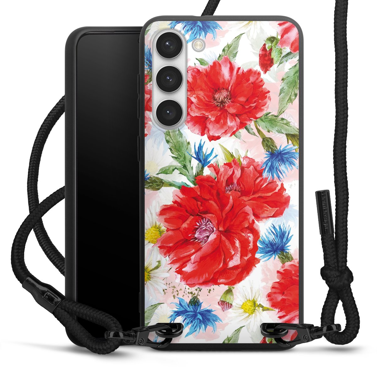 The matt black silicone case is made of flexible TPU (thermoplastic polyurethane) and offers robust protection. The durable, unbreakable material makes the cover flexible and dimensionally stable at the same time. The matte surface makes your design stand out more and is less susceptible to fingerprints and dirt. The stylish trend accessory fits comfortably in the hand and is perfectly complemented by the fabric (polyester) mobile phone strap. The braided fabric strap is approx. 1.70 metres long with a diameter of approx. 0.5 cm. Due to the special knotting technique, the length of the strap can be adjusted by simply pulling it, so that you can adapt it individually to your wishes. The practical case to wear around your neck is available with the fabric strap in black. As a little icing on the cake, we have provided the strap with a chic metal fastener in matt black. The strap is securely fastened to the case with loops made of high-quality genuine leather and press studs. The ends of the fabric strap are covered with metallic end caps and thus protected from fraying.