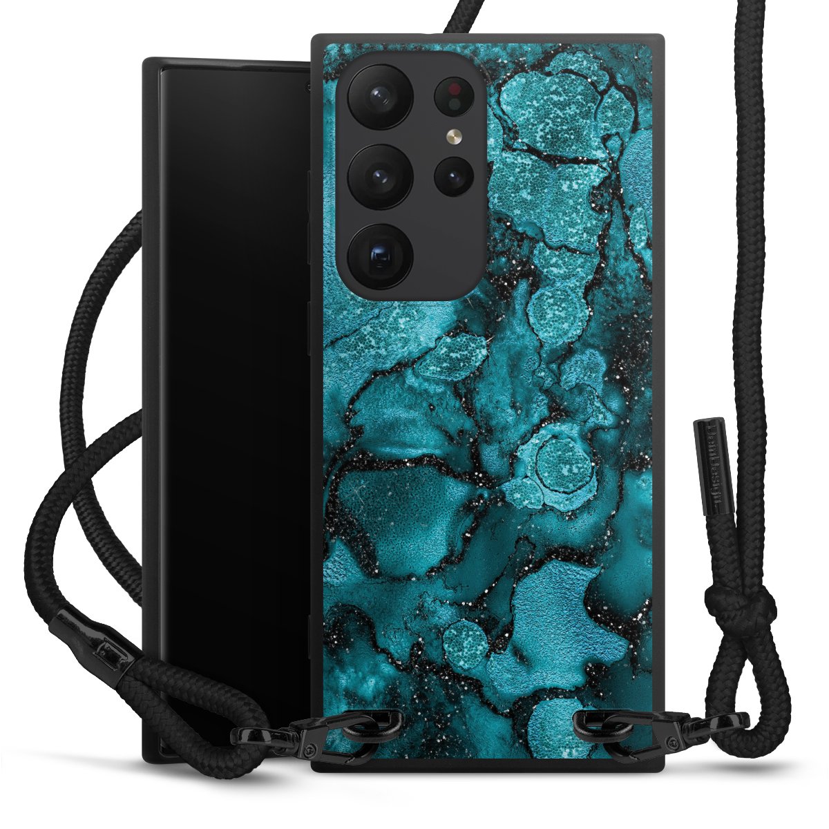 We use the solid direct print process for this phone case, which is why the print area only covers the back and the edge remains unprinted. The case to wear around your neck can be ordered unprinted, fully printed, or partially printed. For your design, either choose one of our exclusive shop motifs or get creative and create your own design, for example with photos and overlays. Design your own personal trend accessory and make an individual statement on the streets!