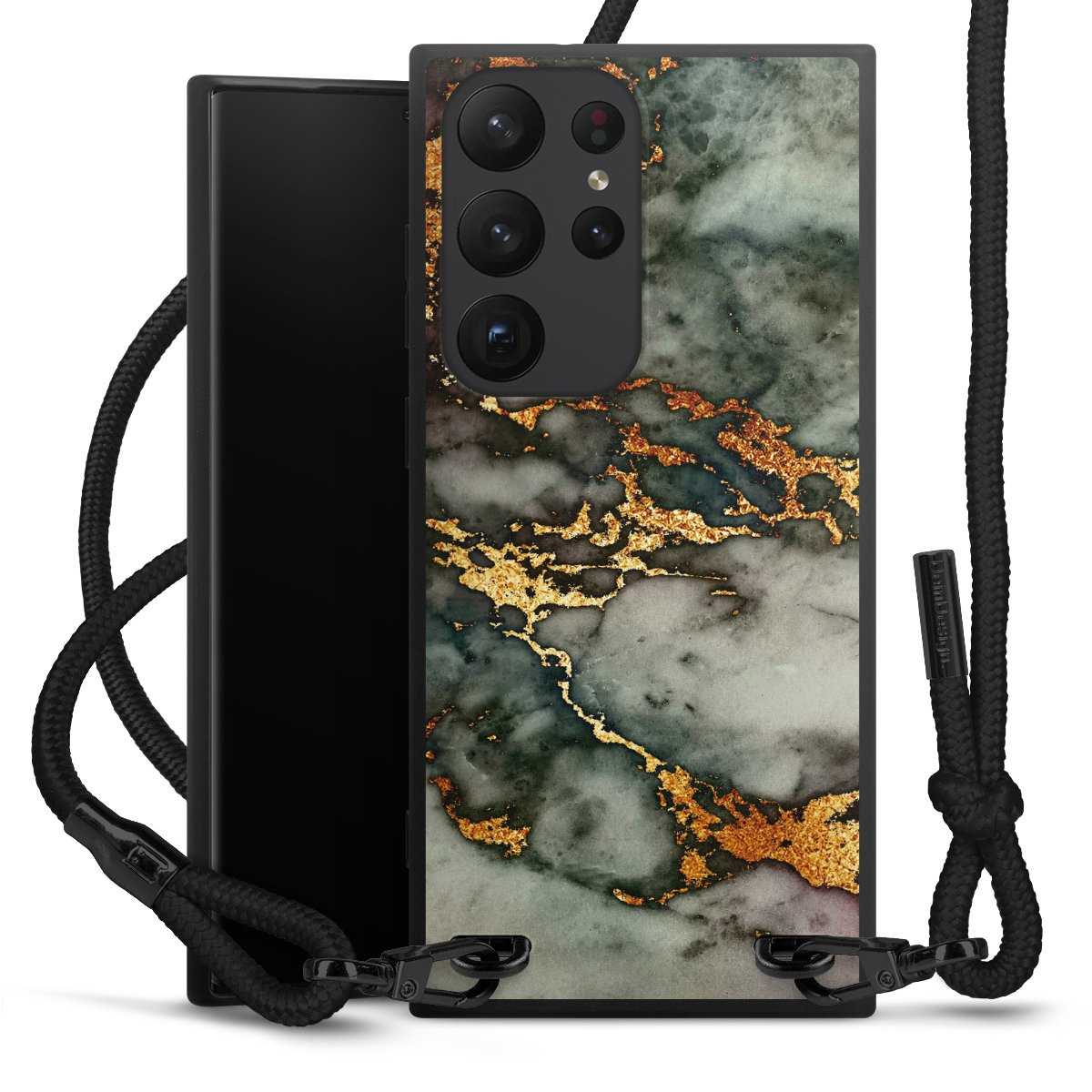 The matt black silicone case is made of flexible TPU (thermoplastic polyurethane) and offers robust protection. The durable, unbreakable material makes the cover flexible and dimensionally stable at the same time. The matte surface makes your design stand out more and is less susceptible to fingerprints and dirt. The stylish trend accessory fits comfortably in the hand and is perfectly complemented by the fabric (polyester) mobile phone strap. The braided fabric strap is approx. 1.70 metres long with a diameter of approx. 0.5 cm. Due to the special knotting technique, the length of the strap can be adjusted by simply pulling it, so that you can adapt it individually to your wishes. The practical case to wear around your neck is available with the fabric strap in black. As a little icing on the cake, we have provided the strap with a chic metal fastener in matt black. The strap is securely fastened to the case with loops made of high-quality genuine leather and press studs. The ends of the fabric strap are covered with metallic end caps and thus protected from fraying.