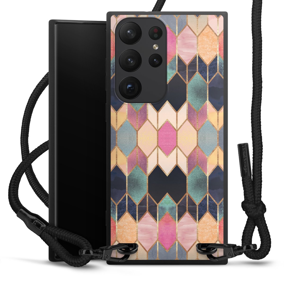 We use the solid direct print process for this phone case, which is why the print area only covers the back and the edge remains unprinted. The case to wear around your neck can be ordered unprinted, fully printed, or partially printed. For your design, either choose one of our exclusive shop motifs or get creative and create your own design, for example with photos and overlays. Design your own personal trend accessory and make an individual statement on the streets!