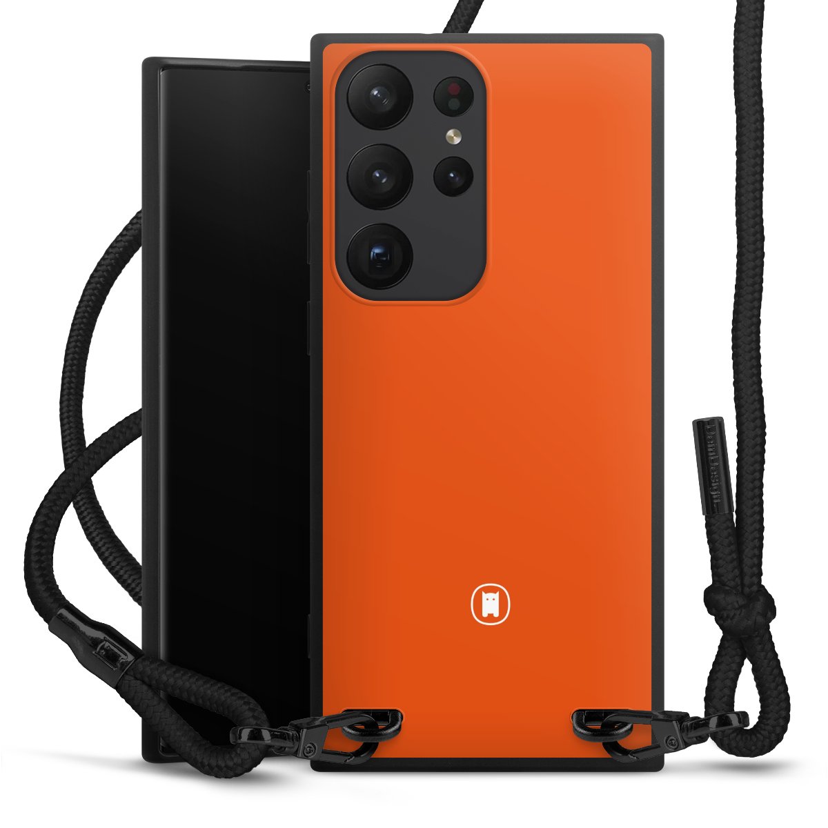 The matt black silicone case is made of flexible TPU (thermoplastic polyurethane) and offers robust protection. The durable, unbreakable material makes the cover flexible and dimensionally stable at the same time. The matte surface makes your design stand out more and is less susceptible to fingerprints and dirt. The stylish trend accessory fits comfortably in the hand and is perfectly complemented by the fabric (polyester) mobile phone strap. The braided fabric strap is approx. 1.70 metres long with a diameter of approx. 0.5 cm. Due to the special knotting technique, the length of the strap can be adjusted by simply pulling it, so that you can adapt it individually to your wishes. The practical case to wear around your neck is available with the fabric strap in black. As a little icing on the cake, we have provided the strap with a chic metal fastener in matt black. The strap is securely fastened to the case with loops made of high-quality genuine leather and press studs. The ends of the fabric strap are covered with metallic end caps and thus protected from fraying.