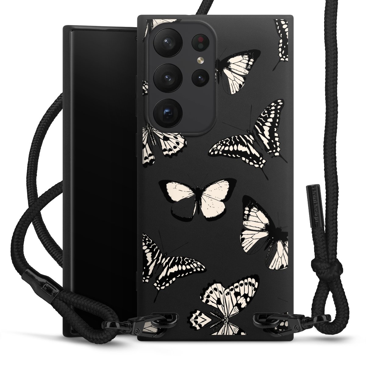 The matt black silicone case is made of flexible TPU (thermoplastic polyurethane) and offers robust protection. The durable, unbreakable material makes the cover flexible and dimensionally stable at the same time. The matte surface makes your design stand out more and is less susceptible to fingerprints and dirt. The stylish trend accessory fits comfortably in the hand and is perfectly complemented by the fabric (polyester) mobile phone strap. The braided fabric strap is approx. 1.70 metres long with a diameter of approx. 0.5 cm. Due to the special knotting technique, the length of the strap can be adjusted by simply pulling it, so that you can adapt it individually to your wishes. The practical case to wear around your neck is available with the fabric strap in black. As a little icing on the cake, we have provided the strap with a chic metal fastener in matt black. The strap is securely fastened to the case with loops made of high-quality genuine leather and press studs. The ends of the fabric strap are covered with metallic end caps and thus protected from fraying.