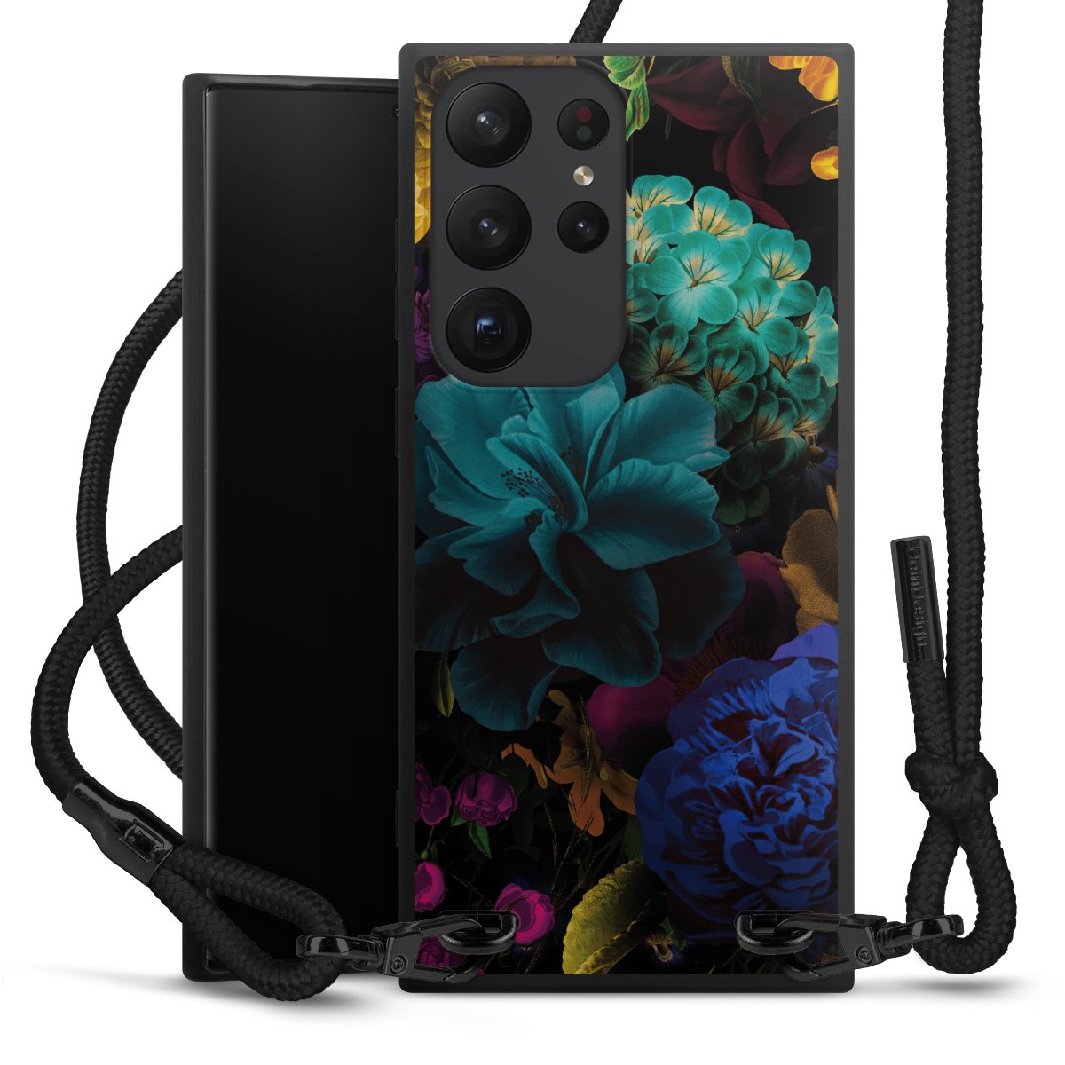 The matt black silicone case is made of flexible TPU (thermoplastic polyurethane) and offers robust protection. The durable, unbreakable material makes the cover flexible and dimensionally stable at the same time. The matte surface makes your design stand out more and is less susceptible to fingerprints and dirt. The stylish trend accessory fits comfortably in the hand and is perfectly complemented by the fabric (polyester) mobile phone strap. The braided fabric strap is approx. 1.70 metres long with a diameter of approx. 0.5 cm. Due to the special knotting technique, the length of the strap can be adjusted by simply pulling it, so that you can adapt it individually to your wishes. The practical case to wear around your neck is available with the fabric strap in black. As a little icing on the cake, we have provided the strap with a chic metal fastener in matt black. The strap is securely fastened to the case with loops made of high-quality genuine leather and press studs. The ends of the fabric strap are covered with metallic end caps and thus protected from fraying.