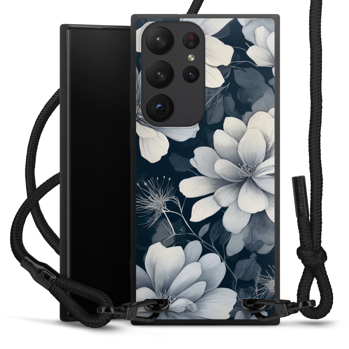 The matt black silicone case is made of flexible TPU (thermoplastic polyurethane) and offers robust protection. The durable, unbreakable material makes the cover flexible and dimensionally stable at the same time. The matte surface makes your design stand out more and is less susceptible to fingerprints and dirt. The stylish trend accessory fits comfortably in the hand and is perfectly complemented by the fabric (polyester) mobile phone strap. The braided fabric strap is approx. 1.70 metres long with a diameter of approx. 0.5 cm. Due to the special knotting technique, the length of the strap can be adjusted by simply pulling it, so that you can adapt it individually to your wishes. The practical case to wear around your neck is available with the fabric strap in black. As a little icing on the cake, we have provided the strap with a chic metal fastener in matt black. The strap is securely fastened to the case with loops made of high-quality genuine leather and press studs. The ends of the fabric strap are covered with metallic end caps and thus protected from fraying.