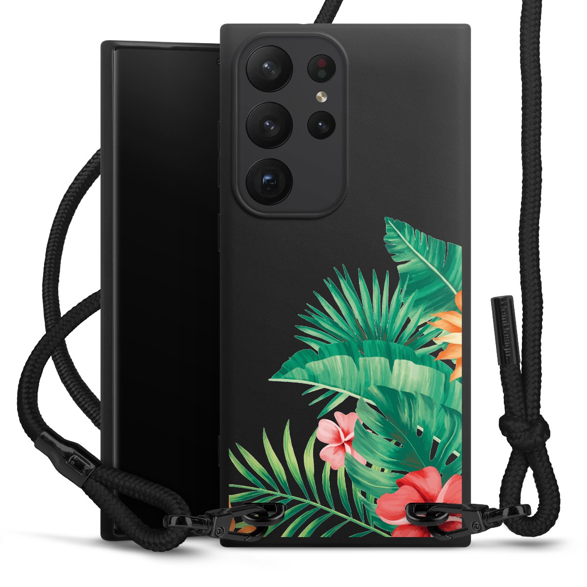 We use the solid direct print process for this phone case, which is why the print area only covers the back and the edge remains unprinted. The case to wear around your neck can be ordered unprinted, fully printed, or partially printed. For your design, either choose one of our exclusive shop motifs or get creative and create your own design, for example with photos and overlays. Design your own personal trend accessory and make an individual statement on the streets!