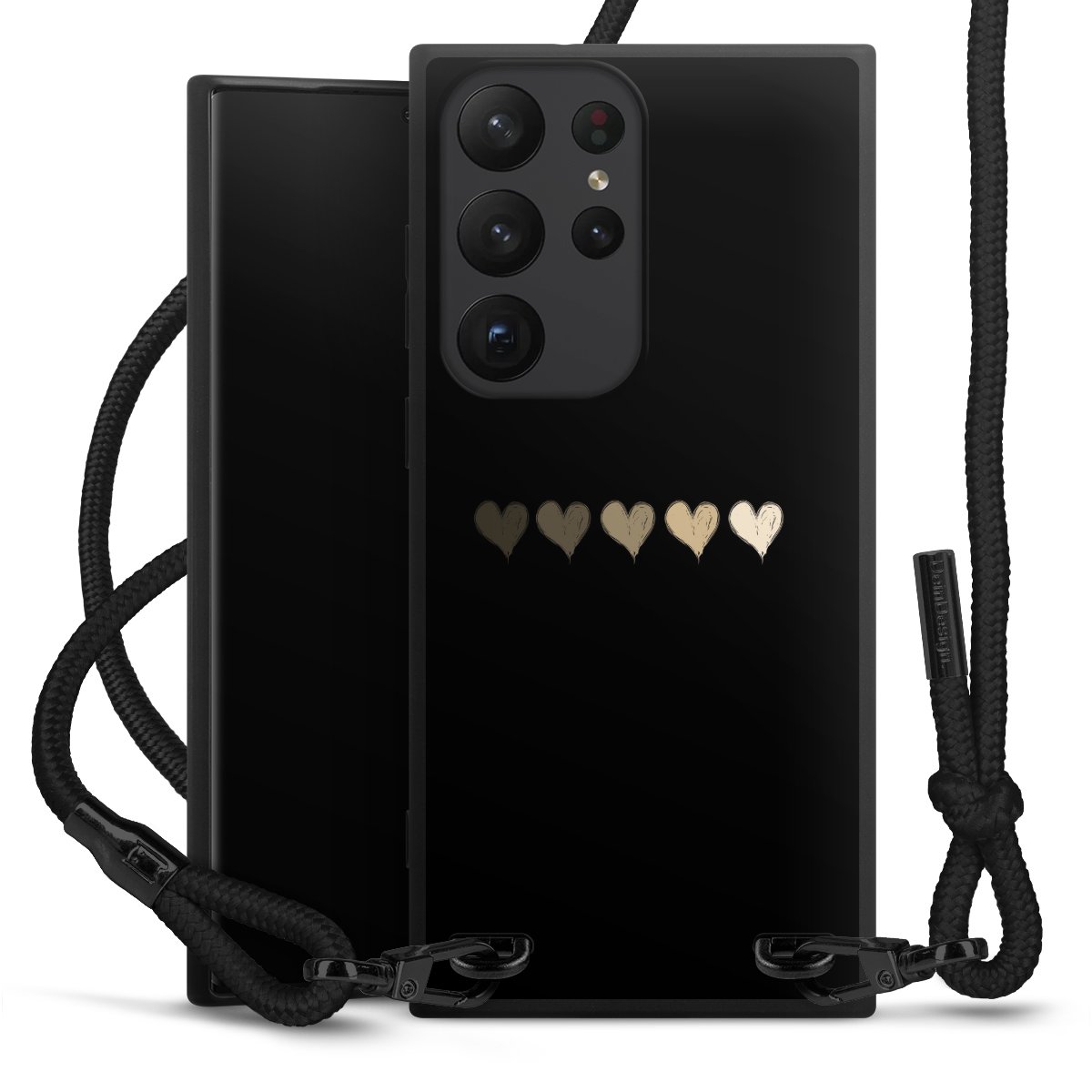 The matt black silicone case is made of flexible TPU (thermoplastic polyurethane) and offers robust protection. The durable, unbreakable material makes the cover flexible and dimensionally stable at the same time. The matte surface makes your design stand out more and is less susceptible to fingerprints and dirt. The stylish trend accessory fits comfortably in the hand and is perfectly complemented by the fabric (polyester) mobile phone strap. The braided fabric strap is approx. 1.70 metres long with a diameter of approx. 0.5 cm. Due to the special knotting technique, the length of the strap can be adjusted by simply pulling it, so that you can adapt it individually to your wishes. The practical case to wear around your neck is available with the fabric strap in black. As a little icing on the cake, we have provided the strap with a chic metal fastener in matt black. The strap is securely fastened to the case with loops made of high-quality genuine leather and press studs. The ends of the fabric strap are covered with metallic end caps and thus protected from fraying.