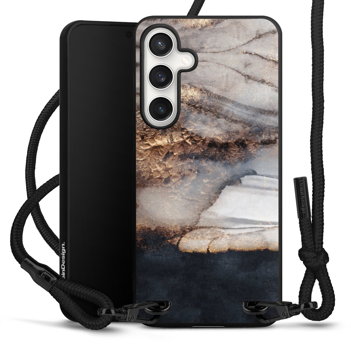 The matt black silicone case is made of flexible TPU (thermoplastic polyurethane) and offers robust protection. The durable, unbreakable material makes the cover flexible and dimensionally stable at the same time. The matte surface makes your design stand out more and is less susceptible to fingerprints and dirt. The stylish trend accessory fits comfortably in the hand and is perfectly complemented by the fabric (polyester) mobile phone strap. The braided fabric strap is approx. 1.70 metres long with a diameter of approx. 0.5 cm. Due to the special knotting technique, the length of the strap can be adjusted by simply pulling it, so that you can adapt it individually to your wishes. The practical case to wear around your neck is available with the fabric strap in black. As a little icing on the cake, we have provided the strap with a chic metal fastener in matt black. The strap is securely fastened to the case with loops made of high-quality genuine leather and press studs. The ends of the fabric strap are covered with metallic end caps and thus protected from fraying.