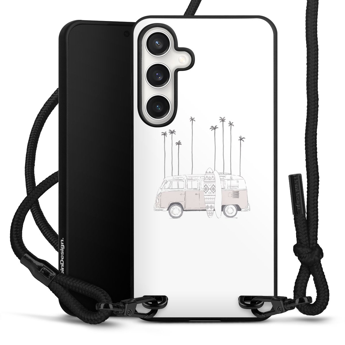 We use the solid direct print process for this phone case, which is why the print area only covers the back and the edge remains unprinted. The case to wear around your neck can be ordered unprinted, fully printed, or partially printed. For your design, either choose one of our exclusive shop motifs or get creative and create your own design, for example with photos and overlays. Design your own personal trend accessory and make an individual statement on the streets!