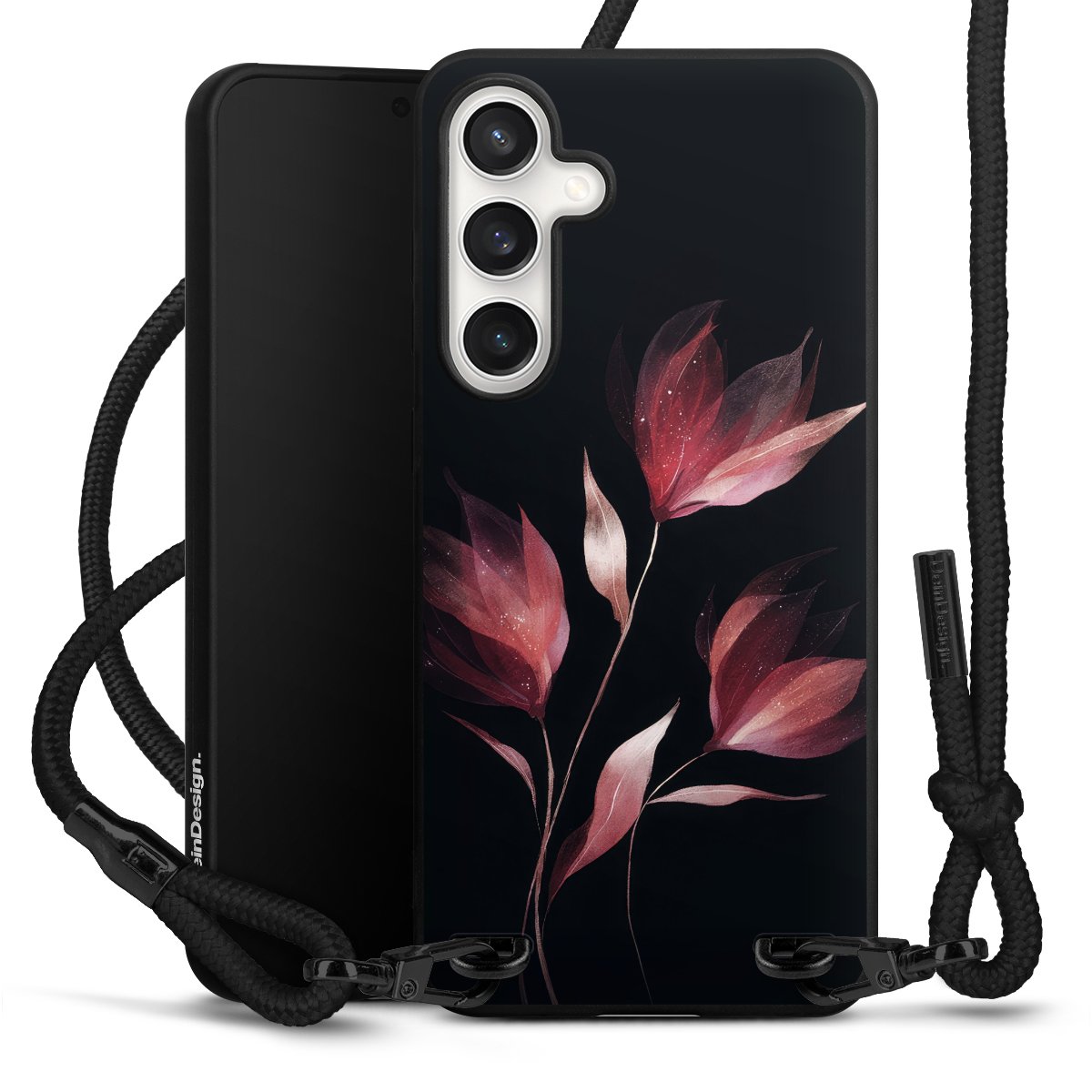 The matt black silicone case is made of flexible TPU (thermoplastic polyurethane) and offers robust protection. The durable, unbreakable material makes the cover flexible and dimensionally stable at the same time. The matte surface makes your design stand out more and is less susceptible to fingerprints and dirt. The stylish trend accessory fits comfortably in the hand and is perfectly complemented by the fabric (polyester) mobile phone strap. The braided fabric strap is approx. 1.70 metres long with a diameter of approx. 0.5 cm. Due to the special knotting technique, the length of the strap can be adjusted by simply pulling it, so that you can adapt it individually to your wishes. The practical case to wear around your neck is available with the fabric strap in black. As a little icing on the cake, we have provided the strap with a chic metal fastener in matt black. The strap is securely fastened to the case with loops made of high-quality genuine leather and press studs. The ends of the fabric strap are covered with metallic end caps and thus protected from fraying.