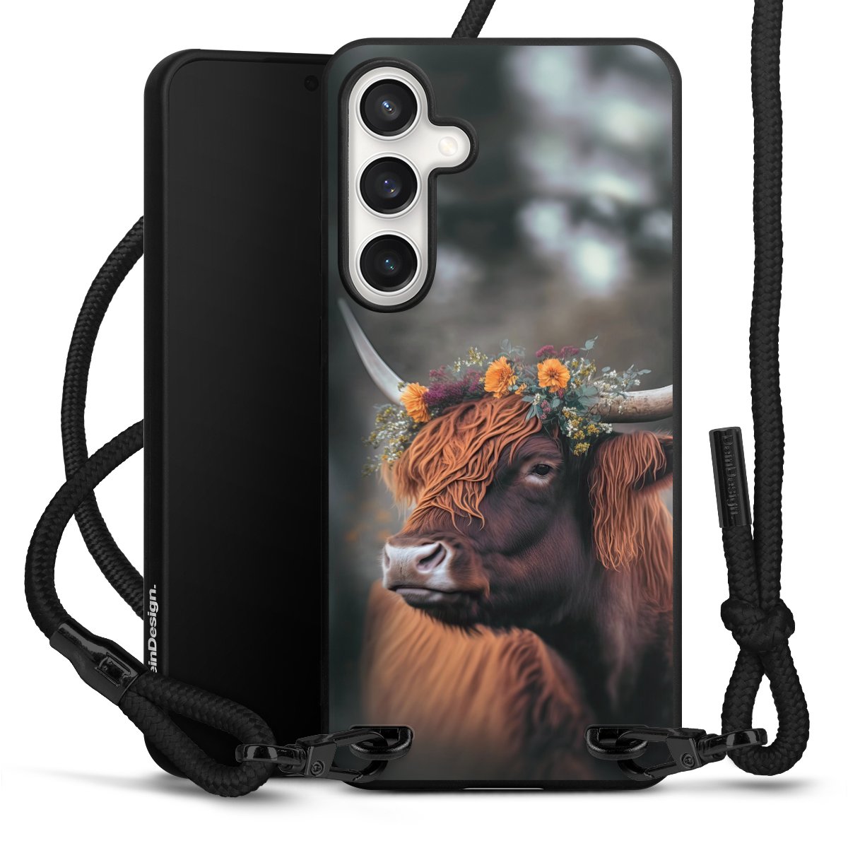 The matt black silicone case is made of flexible TPU (thermoplastic polyurethane) and offers robust protection. The durable, unbreakable material makes the cover flexible and dimensionally stable at the same time. The matte surface makes your design stand out more and is less susceptible to fingerprints and dirt. The stylish trend accessory fits comfortably in the hand and is perfectly complemented by the fabric (polyester) mobile phone strap. The braided fabric strap is approx. 1.70 metres long with a diameter of approx. 0.5 cm. Due to the special knotting technique, the length of the strap can be adjusted by simply pulling it, so that you can adapt it individually to your wishes. The practical case to wear around your neck is available with the fabric strap in black. As a little icing on the cake, we have provided the strap with a chic metal fastener in matt black. The strap is securely fastened to the case with loops made of high-quality genuine leather and press studs. The ends of the fabric strap are covered with metallic end caps and thus protected from fraying.