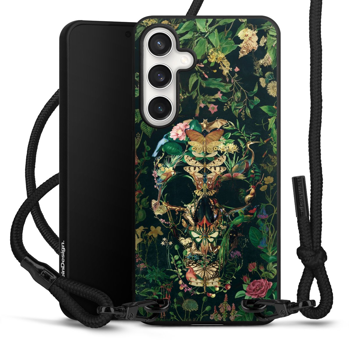 The matt black silicone case is made of flexible TPU (thermoplastic polyurethane) and offers robust protection. The durable, unbreakable material makes the cover flexible and dimensionally stable at the same time. The matte surface makes your design stand out more and is less susceptible to fingerprints and dirt. The stylish trend accessory fits comfortably in the hand and is perfectly complemented by the fabric (polyester) mobile phone strap. The braided fabric strap is approx. 1.70 metres long with a diameter of approx. 0.5 cm. Due to the special knotting technique, the length of the strap can be adjusted by simply pulling it, so that you can adapt it individually to your wishes. The practical case to wear around your neck is available with the fabric strap in black. As a little icing on the cake, we have provided the strap with a chic metal fastener in matt black. The strap is securely fastened to the case with loops made of high-quality genuine leather and press studs. The ends of the fabric strap are covered with metallic end caps and thus protected from fraying.