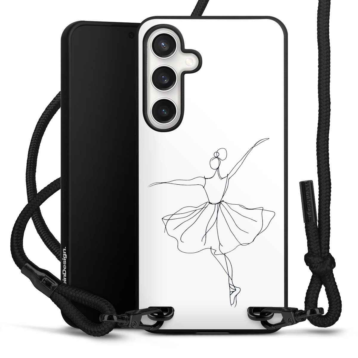 The matt black silicone case is made of flexible TPU (thermoplastic polyurethane) and offers robust protection. The durable, unbreakable material makes the cover flexible and dimensionally stable at the same time. The matte surface makes your design stand out more and is less susceptible to fingerprints and dirt. The stylish trend accessory fits comfortably in the hand and is perfectly complemented by the fabric (polyester) mobile phone strap. The braided fabric strap is approx. 1.70 metres long with a diameter of approx. 0.5 cm. Due to the special knotting technique, the length of the strap can be adjusted by simply pulling it, so that you can adapt it individually to your wishes. The practical case to wear around your neck is available with the fabric strap in black. As a little icing on the cake, we have provided the strap with a chic metal fastener in matt black. The strap is securely fastened to the case with loops made of high-quality genuine leather and press studs. The ends of the fabric strap are covered with metallic end caps and thus protected from fraying.