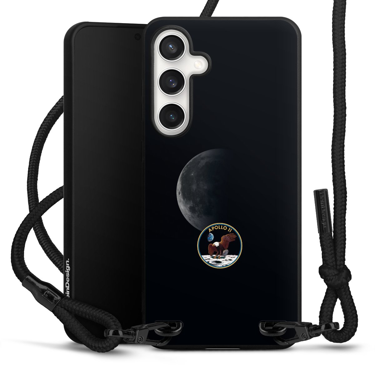 Pure Black: Phone case, fabric strap and metal details in stylish matt black.