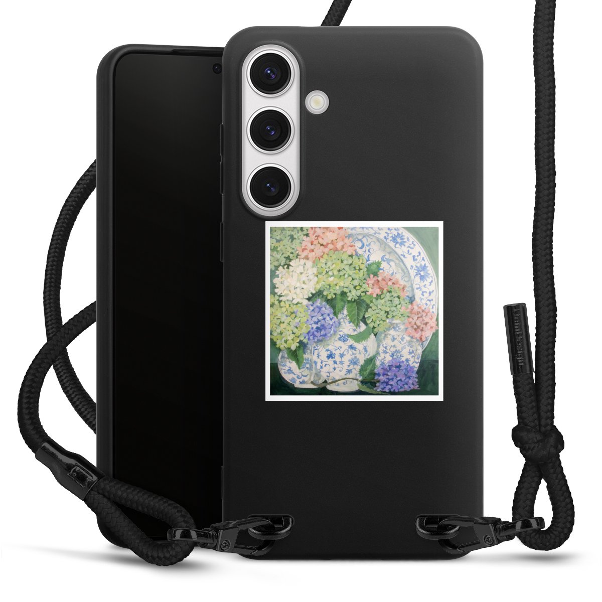 The matt black silicone case is made of flexible TPU (thermoplastic polyurethane) and offers robust protection. The durable, unbreakable material makes the cover flexible and dimensionally stable at the same time. The matte surface makes your design stand out more and is less susceptible to fingerprints and dirt. The stylish trend accessory fits comfortably in the hand and is perfectly complemented by the fabric (polyester) mobile phone strap. The braided fabric strap is approx. 1.70 metres long with a diameter of approx. 0.5 cm. Due to the special knotting technique, the length of the strap can be adjusted by simply pulling it, so that you can adapt it individually to your wishes. The practical case to wear around your neck is available with the fabric strap in black. As a little icing on the cake, we have provided the strap with a chic metal fastener in matt black. The strap is securely fastened to the case with loops made of high-quality genuine leather and press studs. The ends of the fabric strap are covered with metallic end caps and thus protected from fraying.
