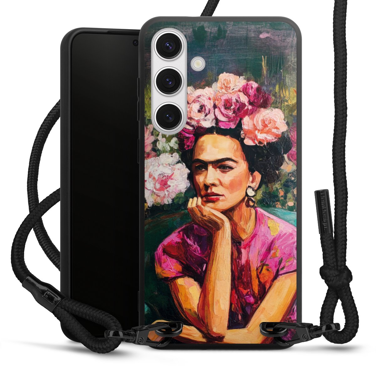The matt black silicone case is made of flexible TPU (thermoplastic polyurethane) and offers robust protection. The durable, unbreakable material makes the cover flexible and dimensionally stable at the same time. The matte surface makes your design stand out more and is less susceptible to fingerprints and dirt. The stylish trend accessory fits comfortably in the hand and is perfectly complemented by the fabric (polyester) mobile phone strap. The braided fabric strap is approx. 1.70 metres long with a diameter of approx. 0.5 cm. Due to the special knotting technique, the length of the strap can be adjusted by simply pulling it, so that you can adapt it individually to your wishes. The practical case to wear around your neck is available with the fabric strap in black. As a little icing on the cake, we have provided the strap with a chic metal fastener in matt black. The strap is securely fastened to the case with loops made of high-quality genuine leather and press studs. The ends of the fabric strap are covered with metallic end caps and thus protected from fraying.
