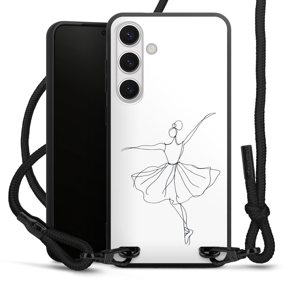 The matt black silicone case is made of flexible TPU (thermoplastic polyurethane) and offers robust protection. The durable, unbreakable material makes the cover flexible and dimensionally stable at the same time. The matte surface makes your design stand out more and is less susceptible to fingerprints and dirt. The stylish trend accessory fits comfortably in the hand and is perfectly complemented by the fabric (polyester) mobile phone strap. The braided fabric strap is approx. 1.70 metres long with a diameter of approx. 0.5 cm. Due to the special knotting technique, the length of the strap can be adjusted by simply pulling it, so that you can adapt it individually to your wishes. The practical case to wear around your neck is available with the fabric strap in black. As a little icing on the cake, we have provided the strap with a chic metal fastener in matt black. The strap is securely fastened to the case with loops made of high-quality genuine leather and press studs. The ends of the fabric strap are covered with metallic end caps and thus protected from fraying.