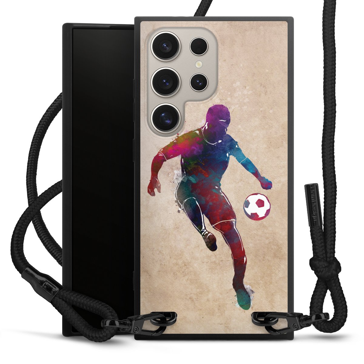 We use the solid direct print process for this phone case, which is why the print area only covers the back and the edge remains unprinted. The case to wear around your neck can be ordered unprinted, fully printed, or partially printed. For your design, either choose one of our exclusive shop motifs or get creative and create your own design, for example with photos and overlays. Design your own personal trend accessory and make an individual statement on the streets!