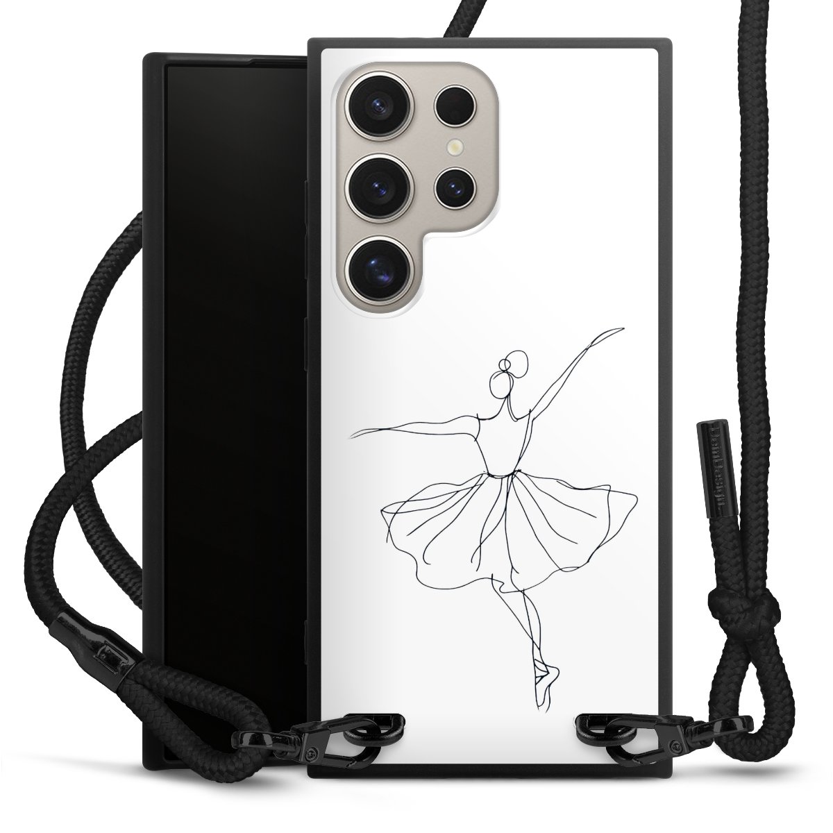 The matt black silicone case is made of flexible TPU (thermoplastic polyurethane) and offers robust protection. The durable, unbreakable material makes the cover flexible and dimensionally stable at the same time. The matte surface makes your design stand out more and is less susceptible to fingerprints and dirt. The stylish trend accessory fits comfortably in the hand and is perfectly complemented by the fabric (polyester) mobile phone strap. The braided fabric strap is approx. 1.70 metres long with a diameter of approx. 0.5 cm. Due to the special knotting technique, the length of the strap can be adjusted by simply pulling it, so that you can adapt it individually to your wishes. The practical case to wear around your neck is available with the fabric strap in black. As a little icing on the cake, we have provided the strap with a chic metal fastener in matt black. The strap is securely fastened to the case with loops made of high-quality genuine leather and press studs. The ends of the fabric strap are covered with metallic end caps and thus protected from fraying.